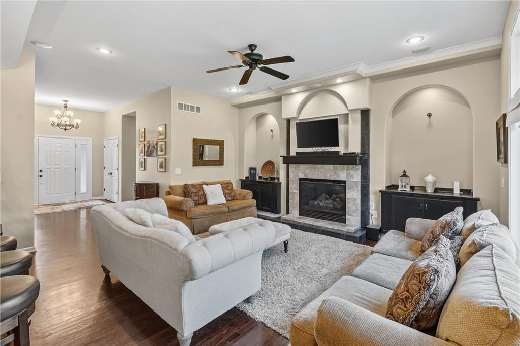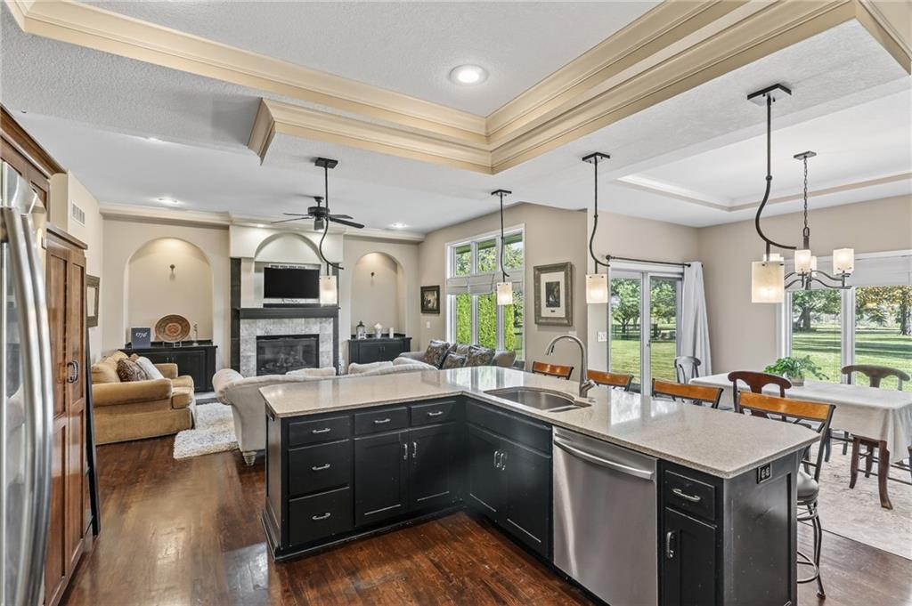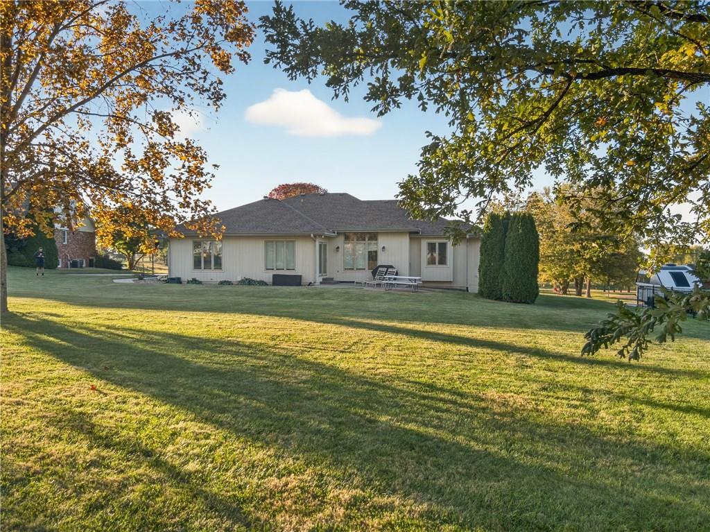 Want the serenity of acreage living—without the endless upkeep? Welcome home. This custom-built masterpiece sits gracefully on a half-acre, surrounded by open fields that stretch endlessly in front and behind, offering uninterrupted views of both sunrise and sunset. Every window frames a moment of beauty, every detail whispers sophistication. Step inside to an expansive open floor plan where sunlight dances across hardwoods and architectural details—arched entries, trayed ceilings, and a custom fireplace that anchors the heart of the home. The chef’s kitchen is nothing short of spectacular: a massive island with seating for seven or more, top-of-the-line gas range and hood, abundant custom cabinetry, and endless counter space that invites gathering, creating, and connection. On the main level, discover three spacious bedrooms, a dedicated office, and the convenience of main-floor laundry. The primary suite feels like a private retreat—complete with a spa-inspired bath featuring a sliding barn door, jetted tub, dual shower heads, double sinks, and an enviable walk-in closet. Two additional bedrooms share a beautifully appointed Jack-and-Jill bath, each with its own walk-in closet. Downstairs, the possibilities expand. A large finished basement with tall ceilings offers a true fourth bedroom, two non-conforming bedrooms, a theater room, and an expansive storage area with built-in shelving. Outside, a flat backyard blends seamlessly into open countryside—peaceful, private, and perfect for gatherings under the stars. The oversized three-car garage has been professionally finished to perfection, ready for cars, hobbies, or an extra workspace. With updated lighting, fresh paint throughout, and a newer roof, this home delivers the ideal blend of refined living and effortless country calm—where every day begins and ends with a view worth a million dollars. **Professional photos coming soon**