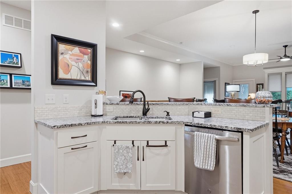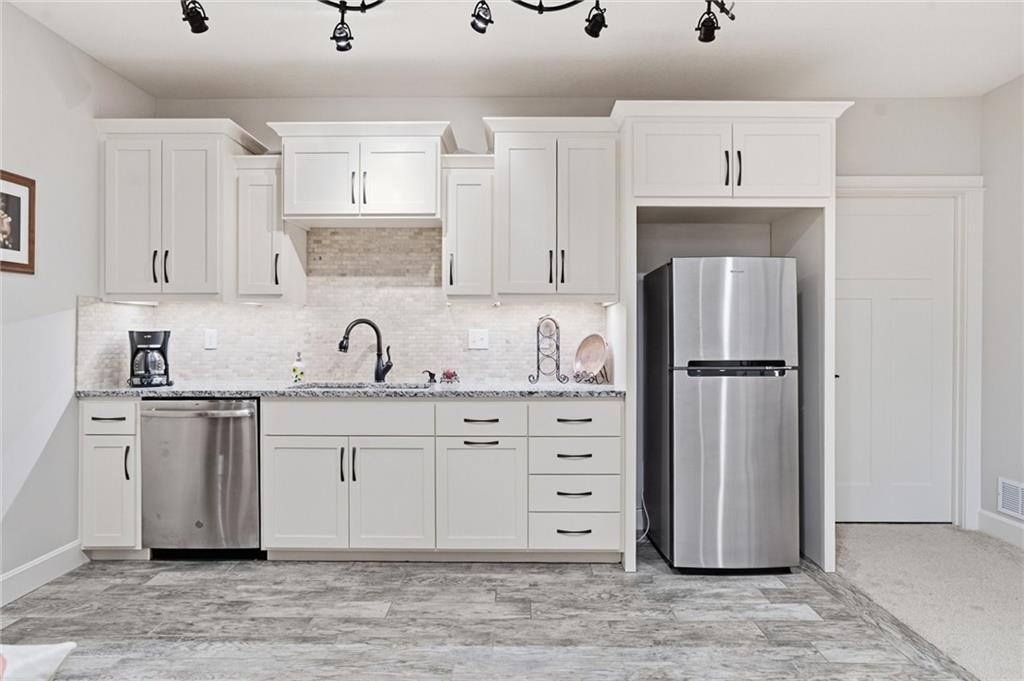 7 year old townhome with one level living + a finished basement with a large storage room. 2BR & 2BA on the main with another 2BR and 1BA in the basement. This homeowner has taken great care of this home. Wonderful screened in porch with treed privacy on the back of the home. Open floor plan from the kitchen through the dining room and living room with stone fireplace. LakeView Villas is one of the best HOA maintained communities in west Lawrence with a beautiful clubhouse, central common space and a single entrance. This is the lifestyle you deserve.