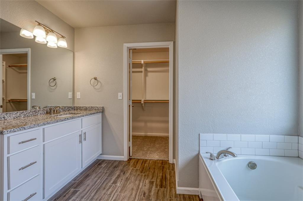 The Joanna is a great plan. She features a picturesque stone and brick exterior with a covered entry. Inside, this home has a corner fireplace and a spacious living area for gatherings. Enjoy a soaker tub, a separate shower, and his and her vanities in the master suite. These photos are a representation of the Joanna. Selections may vary from this home and plans are subject to minor changes.