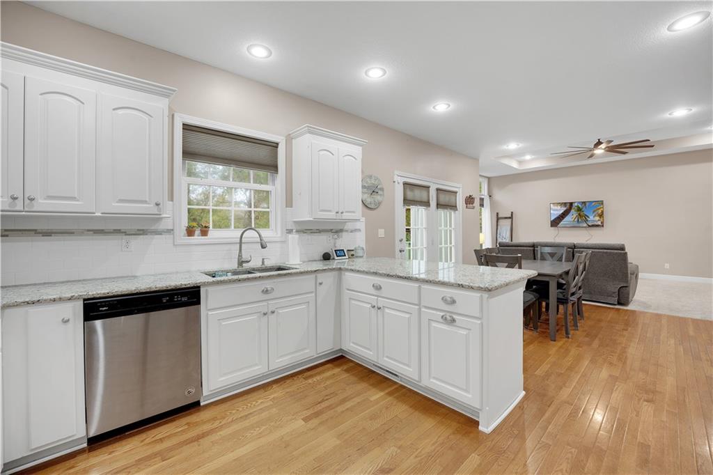 Welcome to this charming 4-bedroom ranch home nestled in the sought-after Deerfield neighborhood of Warrensburg! Main Level: Two spacious bedrooms, including a large primary suite with a beautiful bathroom and generous closet space. Lower Level: Two additional bedrooms and a spacious recreation area, featuring solid flooring throughout — perfect for entertaining or relaxing. Interior Highlights: Bright white-cabinet kitchen with granite countertops, stainless steel appliances, and solid wood flooring. Enjoy the inviting fireplace, clean carpet, and taller-than-average ceilings that add a sense of openness and charm. Exterior Features: A concrete patio, deck area, fully fenced backyard, and stone-landscaped front entry make this home move-in ready and perfect for gatherings. Don’t miss your chance to see this beautiful, well-kept home in one of Warrensburg’s most popular neighborhoods — schedule your showing today!