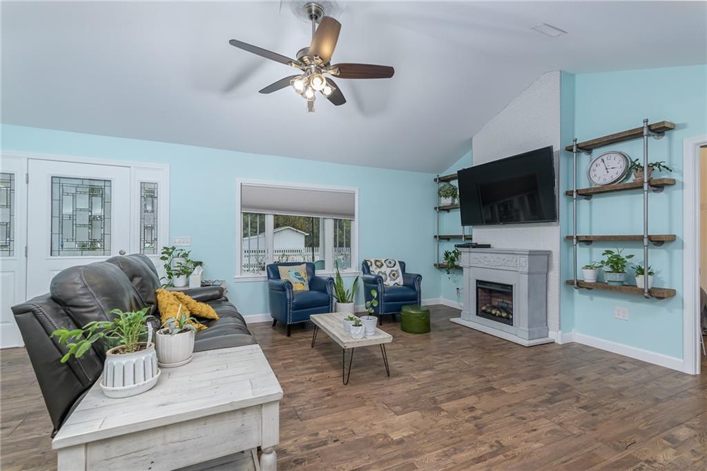 COMPLETELY UPDATED AND MOVE-IN READY, THIS STUNNING 3-BEDROOM RANCH BLENDS MODERN COMFORT WITH SMART, ENERGY-EFFICIENT LIVING! Thoughtfully renovated from the ground up, the home features all-new plumbing, electrical (including a new main line), windows, flooring, kitchen, and baths—plus a new metal roof added last year. With 36 solar panels for low energy costs, this home is as practical as it is beautiful. The bright, open floor plan offers vaulted ceilings, a cozy fireplace in the living room, and a chef’s kitchen with a gas cooktop, built-in appliances, and custom countertops. The primary suite impresses with vaulted ceilings, double vanities, a spacious walk-in shower, and dual walk-in closets. A sunny enclosed porch opens to a private backyard with a gazebo, garden space, and an above-ground pool with a new liner—perfect for summer relaxation. The detached garage provides extra storage with an upstairs loft, all on a well-maintained corner lot with privacy fencing and a convenient location close to everything.