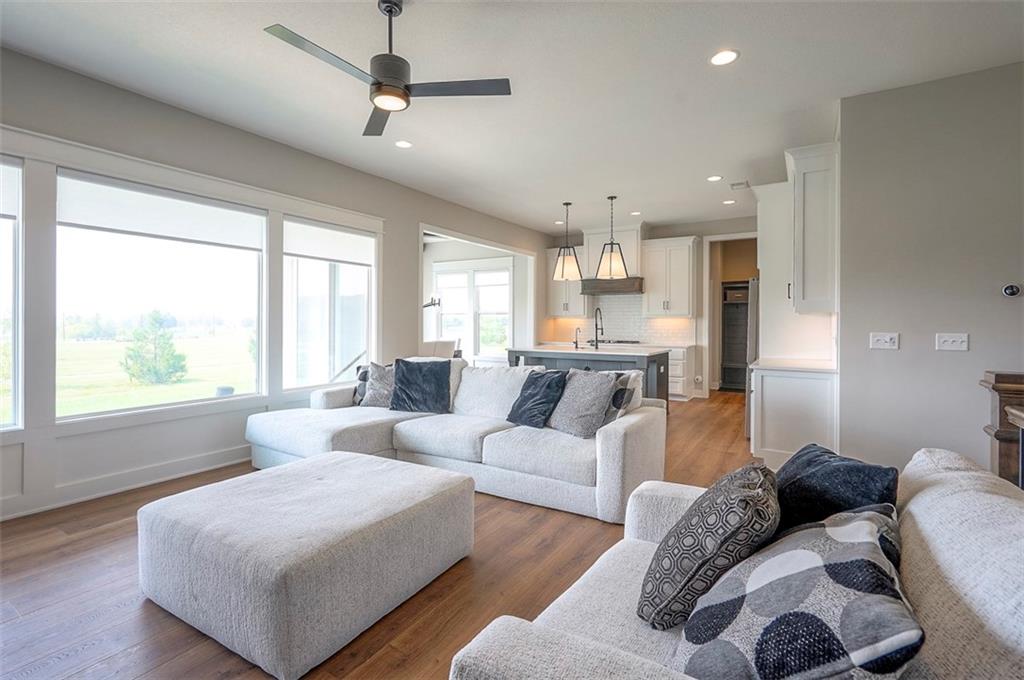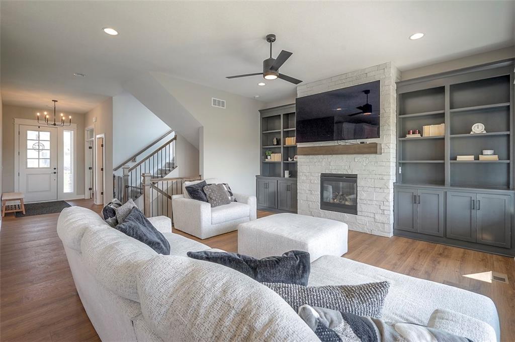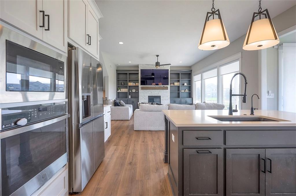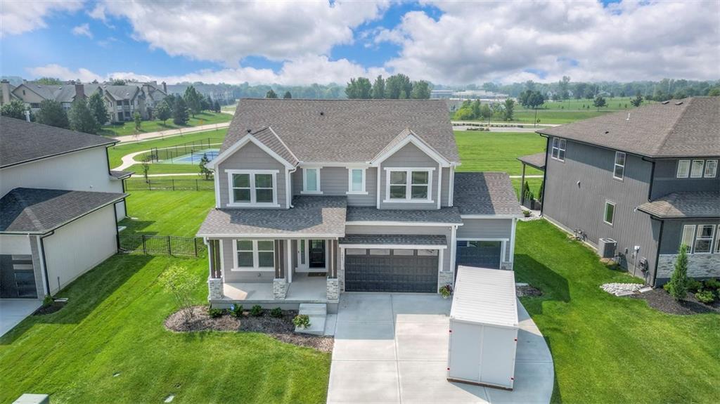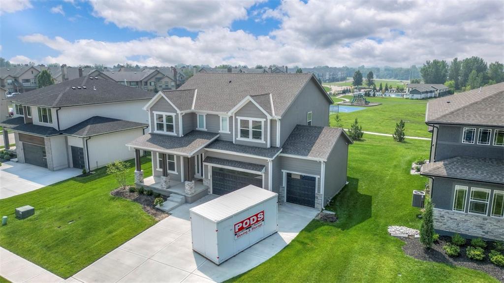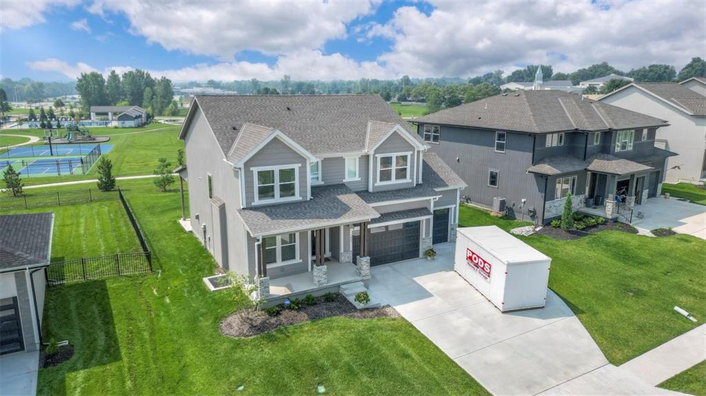 !!!Very Motivated Seller!!! Popular Inspired Homes Inglenook plan with finished basement priced thousands below new build. Awesome lightly lived in home. Home offers over $10K in shades and blinds on all windows, remote control TV Bracket in Great Room, Refrigerator, Washer & Dryer, Ready for New Owners. Home includes water softener system throughout the home, with reverse osmosis water for drinking. Ask about Seller Paid Closing Costs. This home offers No Backyard Neighbors, backing to Green Space, Finished Basement with Exciting Wet bar! The Inglenook 2-Story plan by Award-Winning Builder, Inspired Homes. This home has many upgrades and designer finishes, 10ft ceilings on the main floor, custom cabinets, quartz countertops, gas cooktop with built in oven/microwave, oversized island, huge pantry, upgraded light fixtures. Second Floor offers Large Master Bedroom, with Large Closet, and second floor laundry room. Custom dropzone/bootbench as you walk in from your oversized 3-car garage with a 4ft extension. Oversized, custom Low-E vinyl windows by Pella and an 8 ft glass slider that walks out to your large covered patio. Main floor office/guest bedroom features glass French doors. Finished basement includes 5th bedroom, 4th full bathroom. The Finished lower level is great for entertainment with your friends. Pryor Ridge subdivision has a full community amenity package that includes a playground, open green space, walking trails, basketball & pickleball courts, off-leash dog park and junior-competition sized swimming pool with cabana and shade tents. Home offers a transferable 2.10 warranty offering 10 year structural, 2 year mechanical. Home is near all major highways, schools, shopping and entertainment. Easy commute to downtown Lee's Summit shops mall and restaurants, the Plaza, Power and Light District and CPKC