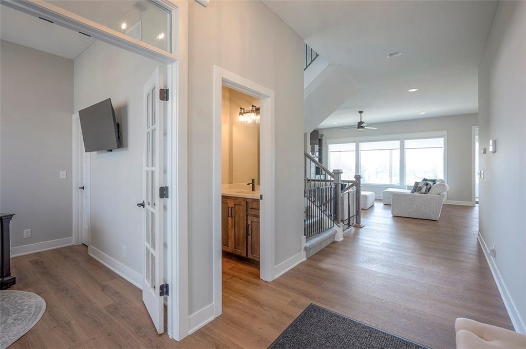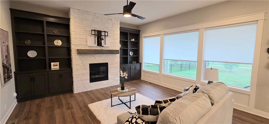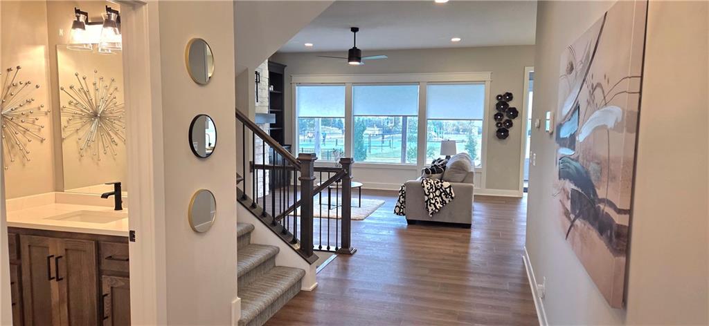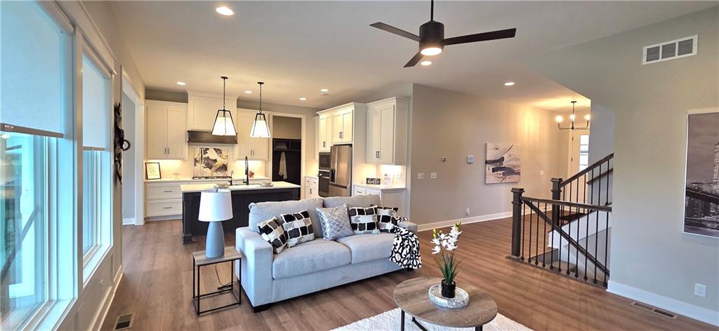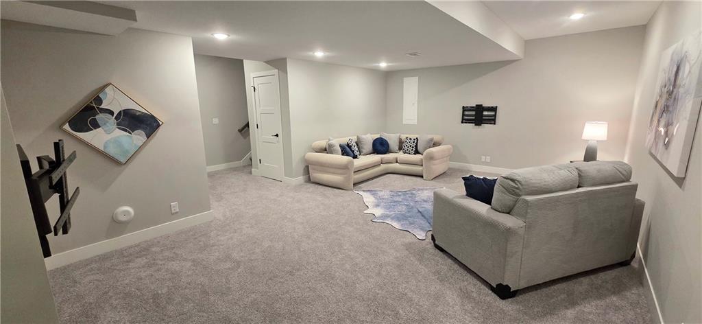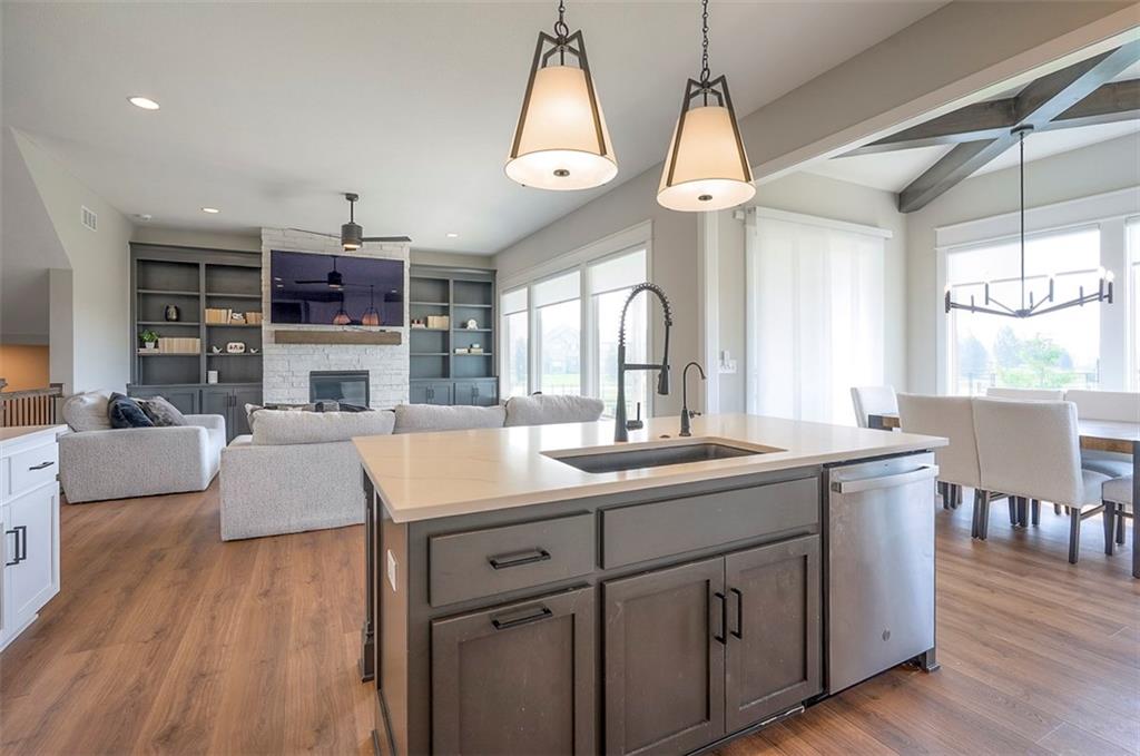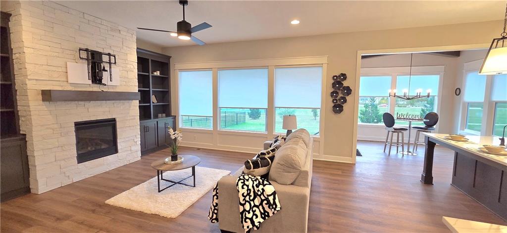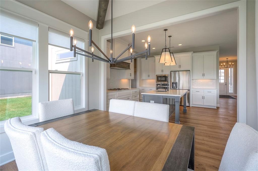 !!!Very Motivated Seller!!! Popular Inspired Homes Inglenook plan with finished basement priced thousands below new build. Awesome lightly lived in home. Home offers over $10K in shades and blinds on all windows, remote control TV Bracket in Great Room, Refrigerator, Washer & Dryer, Ready for New Owners. Home includes water softener system throughout the home, with reverse osmosis water for drinking. Ask about Seller Paid Closing Costs. This home offers No Backyard Neighbors, backing to Green Space, Finished Basement with Exciting Wet bar! The Inglenook 2-Story plan by Award-Winning Builder, Inspired Homes. This home has many upgrades and designer finishes, 10ft ceilings on the main floor, custom cabinets, quartz countertops, gas cooktop with built in oven/microwave, oversized island, huge pantry, upgraded light fixtures. Second Floor offers Large Master Bedroom, with Large Closet, and second floor laundry room. Custom dropzone/bootbench as you walk in from your oversized 3-car garage with a 4ft extension. Oversized, custom Low-E vinyl windows by Pella and an 8 ft glass slider that walks out to your large covered patio. Main floor office/guest bedroom features glass French doors. Finished basement includes 5th bedroom, 4th full bathroom. The Finished lower level is great for entertainment with your friends. Pryor Ridge subdivision has a full community amenity package that includes a playground, open green space, walking trails, basketball & pickleball courts, off-leash dog park and junior-competition sized swimming pool with cabana and shade tents. Home offers a transferable 2.10 warranty offering 10 year structural, 2 year mechanical. Home is near all major highways, schools, shopping and entertainment. Easy commute to downtown Lee's Summit shops mall and restaurants, the Plaza, Power and Light District and CPKC