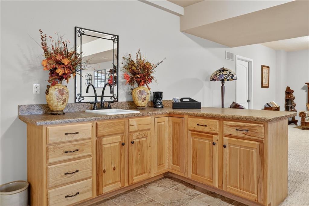 Welcome home to this beautifully landscaped property that combines elegance, comfort, and functionality. Step inside to a very accommodating main level with a spacious living room with an open floor plan and abundant natural light, perfect for everyday living and entertaining. The inviting sunroom offers extra dining and entertainment space, while the kitchen boasts a stunning granite island ideal for gathering. The primary bedroom suite provides a serene retreat with plenty of room to relax. The finished basement expands your living space with a cozy family room and fireplace, a convenient wet bar, bedroom,bath, and sitting room—plus a walk-out to a large, partially covered patio. Enjoy outdoor living on the expansive deck surrounded by gorgeous greenery—this home truly has it all!