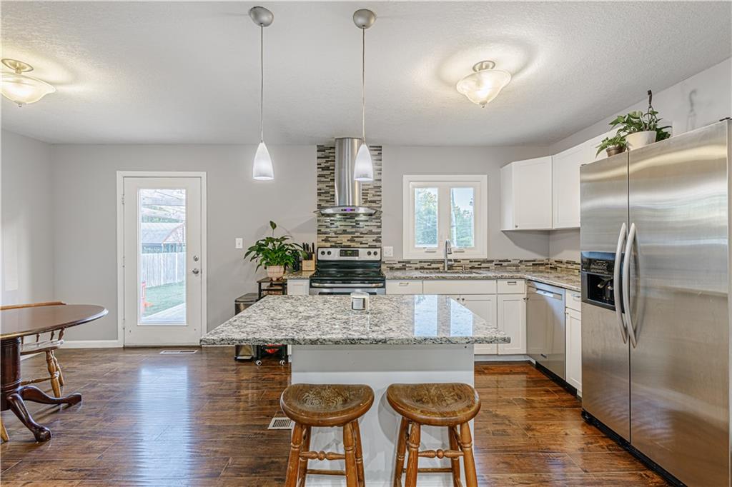 This charming home is move-in ready and full of updates! The open-concept kitchen and living area feature beautiful hardwood floors and plenty of natural light. The kitchen offers granite countertops, modern cabinetry, and room for entertaining. Fresh interior paint gives the home a clean, inviting feel. Enjoy outdoor living on the newer deck (built in 2020) overlooking a spacious fenced backyard with a concrete pad—perfect for a workshop, additional garage, or patio space. The finished basement adds valuable living area with a full bathroom and a non-conforming third bedroom, ideal for guests or a home office. Roof was partially replaced in 2024 following storm damage. Conveniently located near shopping, dining, and easy highway access.