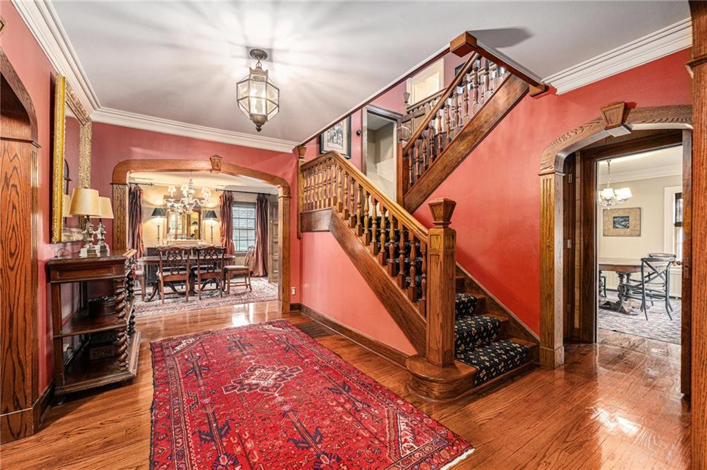 Step into timeless elegance in this stunning English Tudor nestled in the coveted Armour Fields subdivision. From the moment you enter, you’ll be captivated by the arched doorways, beautiful millwork, and both front and back staircases that showcase the home’s architectural charm. This spacious 5-bedroom, 3-full and 2-half bath residence blends classic character with modern comfort. Enjoy a freshly updated kitchen featuring stainless steel appliances and newly refinished cabinets, while the finished lower level with a wet bar is perfect for entertaining. Additional highlights include an oversized heated 2-car garage, sprinkler system, and energy-efficient solar panels. Every corner of this home offers warmth, sophistication, and style—truly a must-see for those who appreciate architectural detail and old-world craftsmanship combined with today’s