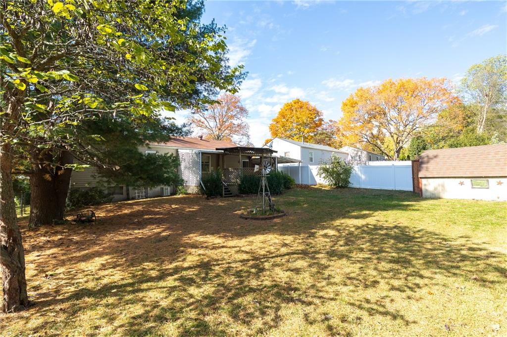Welcome home to this vinyl siding ranch featuring 3 bedrooms with beautiful hardwood floors and new carpet (installed October 2025) in the hall and living room. The single-car garage is complemented by an attached carport with an electric gate, offering convenience and security. Enjoy main-level living with laundry conveniently located in a bedroom closet, plus an additional hookup available in the spacious 840 sq. ft. basement—ready to be finished for extra living space, a workshop, or storage. Step outside to your large covered deck, perfect for relaxing or entertaining, overlooking a fenced backyard with mature trees that provide shade and privacy. A deep extra driveway on the north side allows easy access to the back door, while the shed on a concrete pad offers the ideal space for a workshop or lawn equipment storage. With its low-maintenance exterior, flexible living spaces, and private outdoor setting, this home is move-in ready and full of potential—perfect for first-time buyers, downsizing, or anyone looking for comfortable one-level living!
