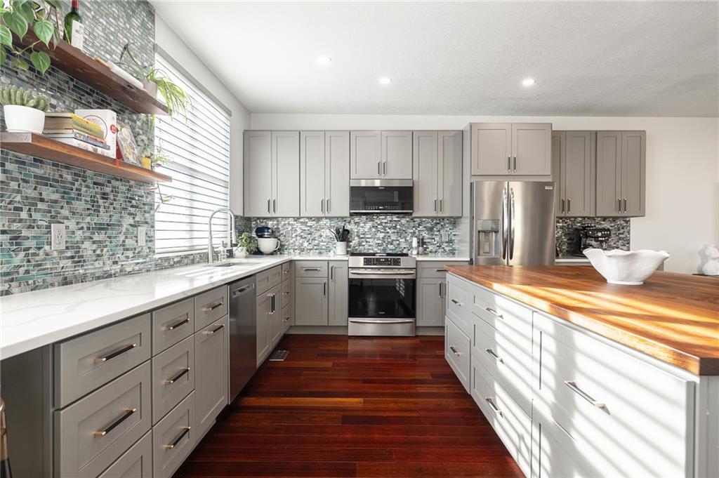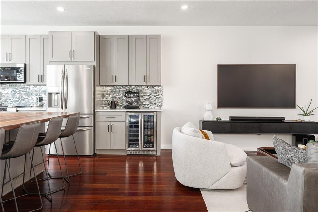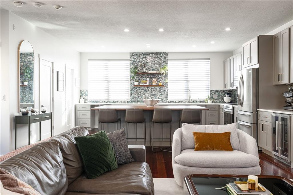 Beautifully updated 2 bedroom Contemporary Condo at the Madison. Located on the world famous Country Club Plaza, minutes to shops, restaurants, parks and so much more. Open floor plan with a stunning large teak island in the kitchen with pristine hard wood floors. Plenty of storage space in the kitchen and a dry bar, perfect for entertaining. Updated half bath and pantry off of the kitchen. Freshly painted throughout with a beautiful entry way chandelier. Vaulted ceilings with electric shades and ceiling fans in the kitchen and living room. Large loft bedroom with a walk in closet, washer and dryer is located in the hallway beside the primary bedroom. Beautiful bathroom with double vanities and lots of cabinet space. Bedroom on the lower level could also be a great office space with a full bathroom. This unit comes with a attached 2 car garage. Guest Parking available. This unit has been well maintained and is move in ready.