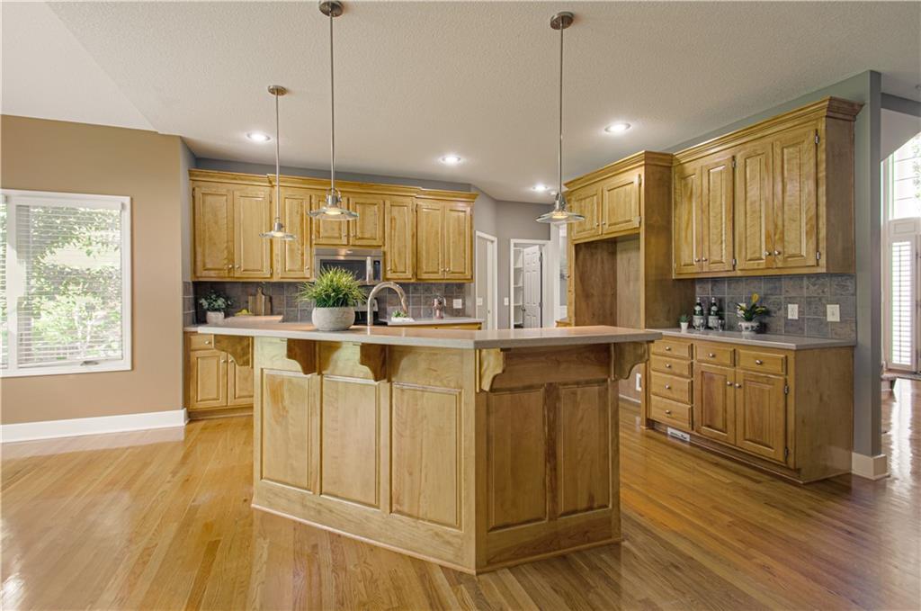 Beautiful 5-Bedroom Home in Falcon Valley with $10,000 Buyer Credit! Discover this move-in ready home in Falcon Valley, one of Lenexa's most sought-after neighborhoods! The seller is offering $10,000 credit to the buyers --use it to buy down your interest rate, cover closing costs, or update flooring or paint. You choose! Pre-Inspected for buyer confidence! Review the report (available in supplements soon) and move forward with peace of mind. Step inside to a bright, open floor plan designed for comfort and everyday living. The kitchen features hardwood floors, stainless steel appliances, solid-surface counters, walk-in pantry, and breakfast area that opens to a welcoming living room, perfect for gatherings and entertaining. A formal dining room adds space for special occasions, and the main-floor 5th bedroom provides flexibility for guests, a home office, work out room, or playroom. Upstairs, the primary suite offers a cozy sitting area with fireplace, spa-like bath, and a large walk-in closet connected to the laundry room. One secondary bedroom has its own private bathroom. Bedrooms 3 and 4 share a Jack and Jill bathroom. So much storage since all bedrooms feature walk-in closets. Relax on the covered lanai with built-in TV and serving bar overlooking an open, park-like backyard with mature trees and room to enjoy the outdoors. The unfinished basement (with egress window and bath stub) is ready for your finishing touches, and the oversized 3-car garage offers plenty of storage or room for expansion. HOA offers swimming pool and tennis/pickleball courts. Enjoy nearby Millcreek Streamway Trails as well. Conveniently located near highways, golf, shopping, and dining, this home offers comfort, flexibility, and confidence from day one. Welcome home!