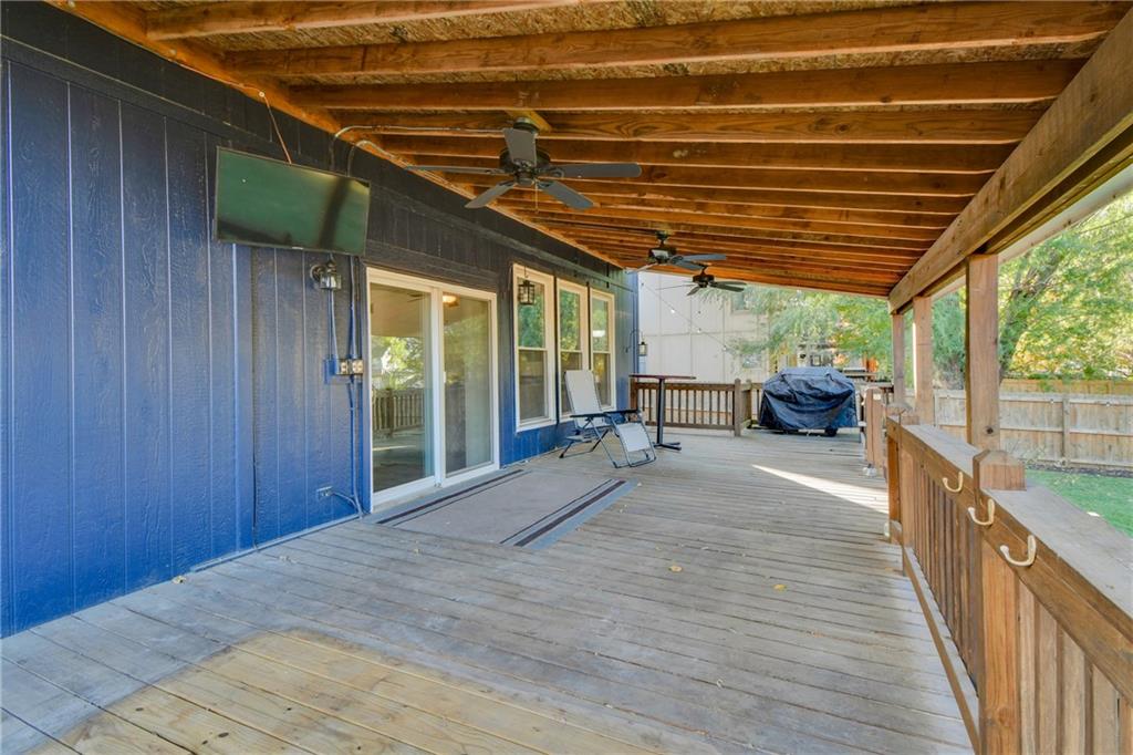 Beautifully Updated Home in Award-Winning Olathe Schools! Stunning curb appeal and timeless charm welcome you to this immaculate 2-story home, ideally located in the highly sought-after Olathe School District just behind Chisholm Trail Middle School and near Sunnyside Elementary, with quick access to Garmin HQ, highways, restaurants, and shops. Step inside to a freshly painted bright white interior that feels modern and inviting. The open floor plan features newer luxury vinyl plank flooring throughout the main level, seamlessly connecting the spacious living room, dining area, and kitchen. The kitchen offers ample and bright cabinets, plenty of counter space, and newer appliances perfect for everyday living and entertaining. The living room greats you with a cozy fireplace and large windows overlooking the covered back deck and beautifully maintained backyard, ideal for outdoor gatherings or quiet evenings. Upstairs, the light-filled primary suite includes double vanities, a walk-in shower, and a generous walk-in closet. The basement is complete with a full bathroom, adding versatile living space perfect for a family room, gym, or home office. With its prime location, stylish updates, and welcoming neighborhood, this home is truly move-in ready!