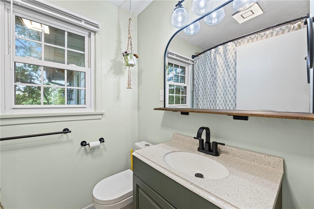 DON'T MISS OUT on this cozy, stylish, and move in ready home nestled in the Northland. As you arrive to the home, you will notice an extra long driveway providing tons of parking for family gatherings or football tailgates! Enter through the front door and you are greeted with beautifully refinished original hardwood floors, trendy wall colors, and a warm and inviting fireplace. In the kitchen you will find tasteful and modern updates such as: painted cabinets, new tile flooring, backsplash, countertops, fixtures, and a mobile island (which stays with the home!) providing additional counterspace for all of your cooking needs. The main bathroom features new tile floor, new sink, toilet, mirror, and fixtures. Continue to the oversized master bedroom, featuring a walk in closet, tons of natural light, and a door to the exterior. The backyard is massive, treed, and serene. Close to highways, shopping, trails and parks. A MUST SEE!