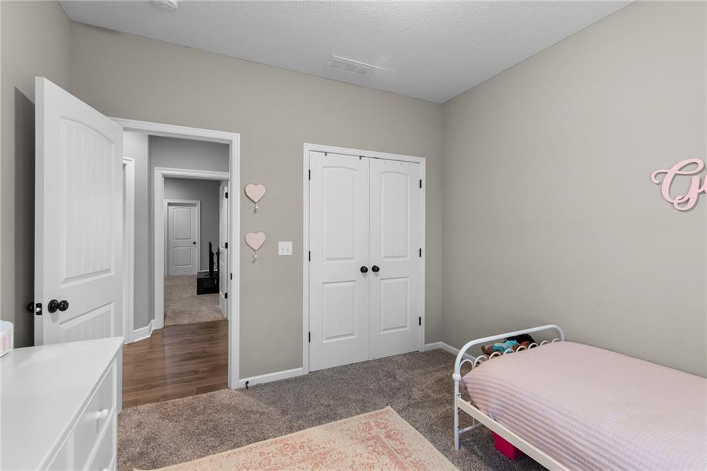 Meet Maggie, our adorable long-haired miniature dachshund and proud mascot — you’ll spot her in two of the listing photos, ready to give you a warm welcome home! This charming 5-bedroom, 3-bath ranch offers the perfect blend of comfort and style. The great room features soaring ceilings and a cozy gas fireplace, creating an inviting space to relax. The kitchen boasts beautiful wood cabinets, granite countertops, and an oversized island with a breakfast bar — ideal for entertaining. A separate dining area opens to a covered patio with a ceiling fan, perfect for outdoor enjoyment. The primary suite showcases a 10-foot tray ceiling, a spacious walk-in closet, and a luxurious bath with ample storage, a soaking tub, and a separate shower. Two additional bedrooms and a full bath are located off the great room. The finished basement adds even more living space, featuring a large rec room, two bedrooms, and a shared full bath. With laundry hookups on both the main level and in the garage, a two-car garage, a sprinkler system, and access to nearby parks, walking trails, and community amenities — this home has it all. Maggie says, “Welcome home — you’re going to love it here!”