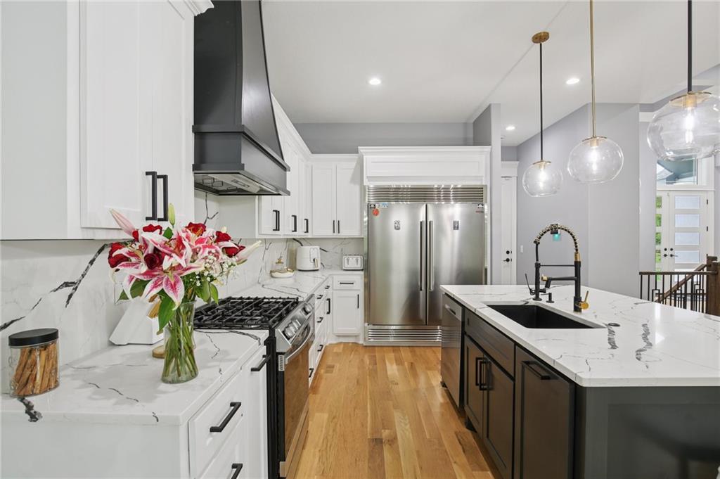 Welcome Home to Modern, Comfort and Luxury Living! This stunning like-new home offers the perfect blend of elegance, comfort, and high-end design. Only a couple of years old, this property has been meticulously maintained and built with top-quality craftsmanship throughout. Situated on a spacious double lot, this home provides both privacy and plenty of room to enjoy indoor and outdoor living. Step inside to an open-concept floor plan filled with natural light, showcasing beautiful hardwood floors, modern finishes, and thoughtful details in every room. Whether you’re hosting guests or enjoying quiet evenings with family, this home offers the ideal balance of sophistication and warmth. Spacious Layout – Open and inviting design with high ceilings and hardwood floors throughout the main level. Luxury Master Suite – Includes a stunning sunroom-style retreat, an oversized walk-in closet, and a spa-inspired bathroom featuring a jacuzzi tub and full glass shower. Gourmet Kitchen – Custom cabinetry, top-of-the-line stainless steel appliances, quartz countertops, and a spacious dining area that opens to a covered patio—perfect for entertaining. Finished Basement – Fully finished with three additional bedrooms, a full bath, and an extra covered patio, providing flexible space for guests, a home gym, or an office. Smart Home Security – Equipped with a full camera system that will remain with the home, ensuring comfort and peace of mind. Expansive Double Lot – Beautifully landscaped with plenty of room for gatherings, recreation, or future outdoor enhancements. Premium Location – Conveniently located just minutes from I-435, with easy access to the airport, The Legends, Zona Rosa, Sporting KC, shopping, and fine dining. This home is a rare find, modern, elegant, and move-in ready. Don’t miss the opportunity to own this exceptional property in a sought-after location with a great schools! Schedule your private showing today and experience luxury living at its finest!