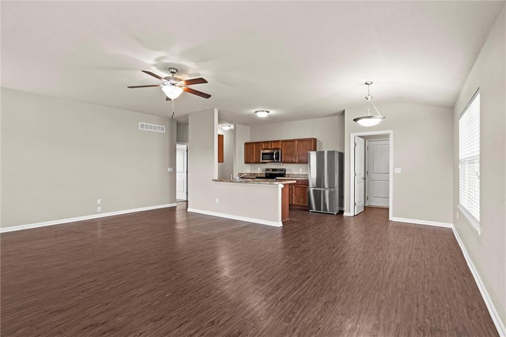 This three bedroom, two bathroom home offers an open floor plan with a spacious kitchen connected to the main living area. Common areas feature luxury vinyl plank flooring for easy maintenance. The property also includes a full unfinished basement, providing additional space for storage, office, craft, or play. Located near shopping and major employers.