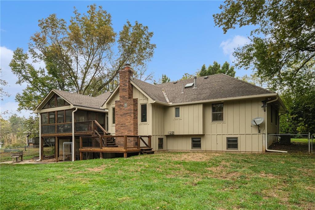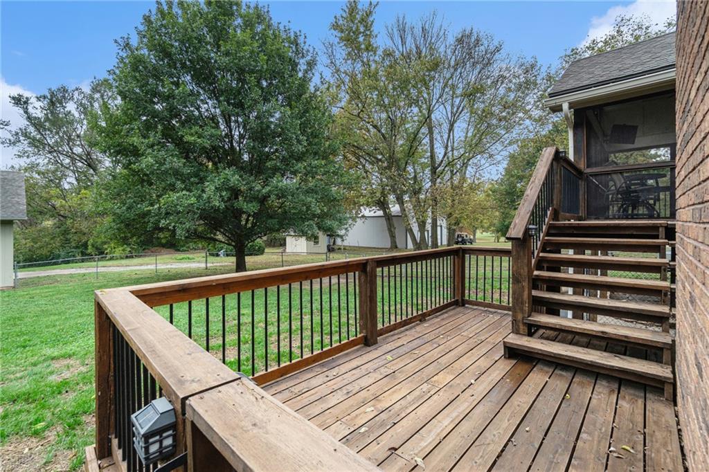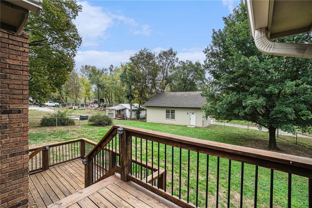 Country living within Liberty city limits! A beautifully updated and revered ranch floorplan, this property has all the space you’re looking for with 5+ picturesque acres, a hobbyist’s dream workshop, finished walkout basement with three separate storage areas, a screened-in deck and updates you’ll love. A family room with a brick fireplace on both the main floor and in the basement, formal dining room, and basement rec area provide plenty of opportunity for entertaining. Your new favorite place to relax and unwind–the screened-in deck provides protection from the elements so you can do just that. Aesthetically pleasing, cathedral-beam ceiling, stainless steel quad-door refrigerator and new tile laid throughout each bathroom. The primary ensuite bath features a second closet with built-ins to keep you organized. Shared hall bathroom with double sinks and an oversized walk-in shower in the final bath. The 30x35 outbuilding offers endless possibilities for woodworking, crafting, or car projects. Outfitted with excellent lighting, multiple ceiling fans, an air filtration system, and furnace, it’s designed for year round comfort. The space features built-in shelving and storage, durable concrete floors, and plenty of room for tools, equipment, or machinery. Garage door provides easy access, while dedicated workbenches and organization systems make it ready for immediate use. Whether you’re a weekend DIYer or a serious craftsman, this setup has everything you need to create, build, and tinker to your heart’s content. Relish in the tranquility of your sprawling property while being only minutes from all the amenities and charm that historical Liberty has to offer!