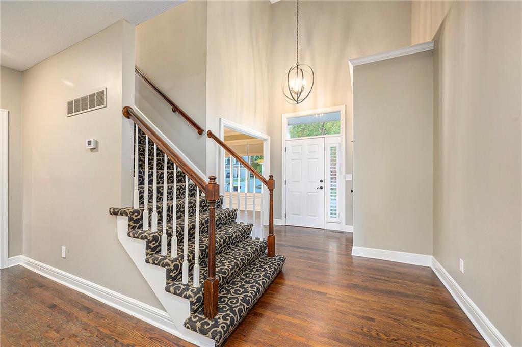 Beautifully updated and well-maintained 1.5-story in Hills of Walden offers generous space, thoughtful updates, and community appeal. The main level features original hardwood flooring, a bright kitchen with granite counters, center island, pantry, and newer stainless refrigerator & dishwasher. The main level primary suite includes a tray ceiling, updated carpet, and a bath with dual vanities, soaking tub, and separate shower. A formal dining area opens to a spacious great room with fireplace and large windows overlooking the fenced backyard. Upstairs, three additional bedrooms and a full bath complete the upper level. The finished walk-out basement adds exceptional versatility with a fifth bedroom, non-conforming sixth room ideal for office or guest use, full bath, and rec area with tiled floors and walk-out access to a stone patio. Recent improvements include full interior paint (2025), new roof (Summer 2025), newer AC and water heater, and mud jacked driveway & walkway. Outdoors, enjoy a large refreshed deck and fenced yard with mature trees—perfect for outdoor gatherings. Located on a cul-de-sac within a sought-after HOA offering pool, clubhouse, and tennis courts, this home combines comfort, updates, and convenience in one functional layout. Nearby Amenities Hills of Walden community clubhouse, swimming pool, and tennis courts within subdivision. Convenient access to Barry Road and I-29 corridor shopping including Hy-Vee, Target, and Zona Rosa (approx. 10 minutes). Line Creek Trail and Line Creek Community Center located within about one mile. Easy highway access via NW 64th Street/I-29 interchange (approx. 1.3 miles). Variety of dining and service options within a 1-mile radius along Barry Road and Congress Avenue. Located in the desirable Park Hill School District!