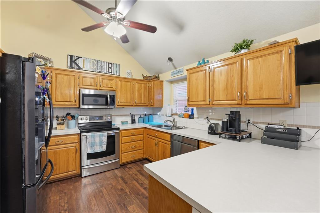 Welcome to the sought after Summerfield subdivision, This spacious and inviting Three bedroom,2 full Bath raised ranch, nestled in a peaceful, family friendly neighborhood. From the moment you walk in you'll be impressed by the vaulted ceilings, open concept living spaces, kitchen with loads of cabinets, bar seating and spacious dining area, perfect for cooking,entertaining or gathering with loved ones. The primary bedroom offers his and hers closet with a full bathroom. Enjoy the outdoors in your large backyard with new fencing and the expansive deck.