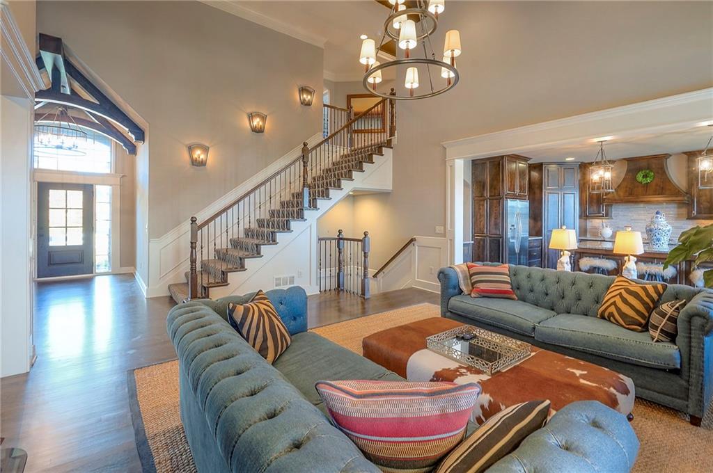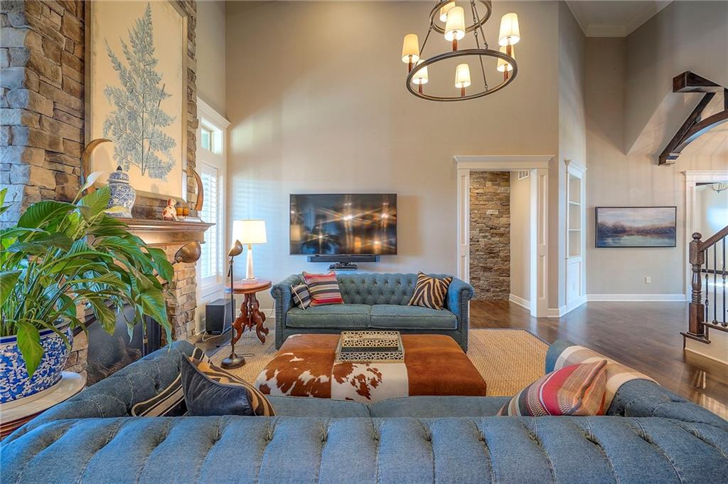 Welcome to 3301 W 157th Street, a 5-bedroom, 5.5-bathroom 1.5-story home in the WatersEdge community where thoughtful design and everyday luxury meet seamlessly. From the vaulted ceilings to the striking floor-to-ceiling stone fireplace, every detail sets a refined and welcoming tone. The main floor features a spacious primary suite with a large walk-in closet and spa-like bath, a private office just off the entry, and a chef’s kitchen complete with a hidden walk-in pantry. A conveniently located half bath, laundry room, and mudroom with locker-style storage and a built-in bench make everyday living simple and efficient. Just off the main living area, a covered deck offers the perfect setting for entertaining or relaxing outdoors. Upstairs, a loft overlooks the main level and provides flexibility as a second living area, playroom, or creative retreat. Each of the three upstairs bedrooms has its own full en-suite bathroom, offering privacy and comfort for everyone. The finished walkout basement is built for entertaining, featuring a wide open game area perfect for a pool table, a private wet bar ideal for poker nights or football gatherings, and a spacious TV sitting area with access to a covered patio and backyard firepit. The fifth bedroom and a full bath are also located on this level, creating a private guest space or multi-generational living option. Located in the Blue Valley School District, this home offers a complete package of comfort, functionality, and luxury living.