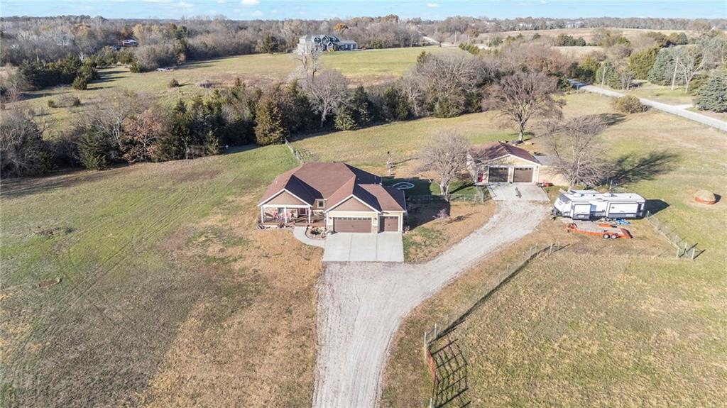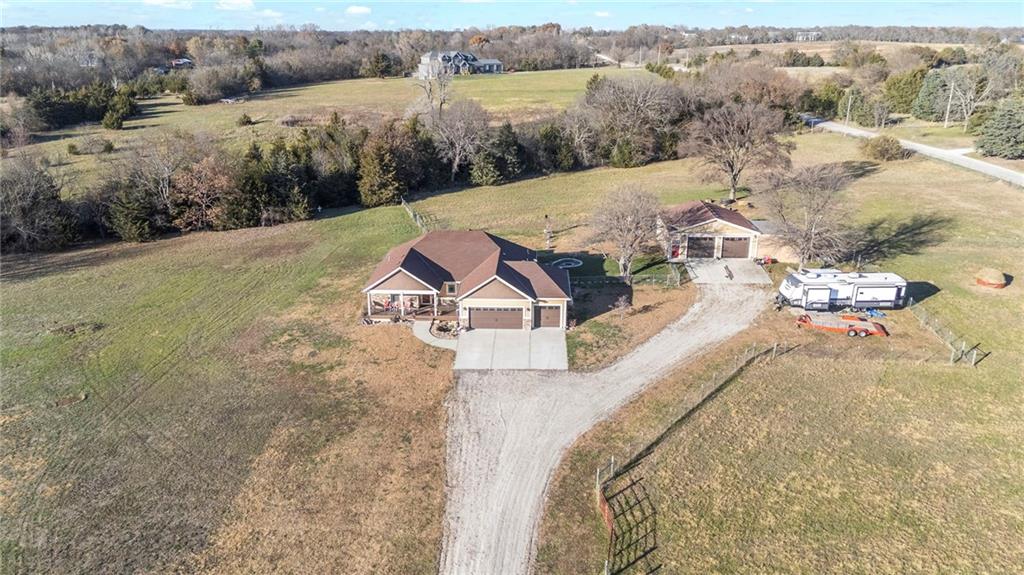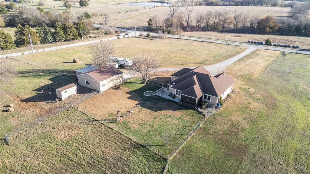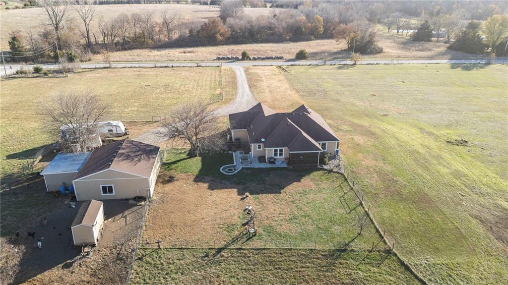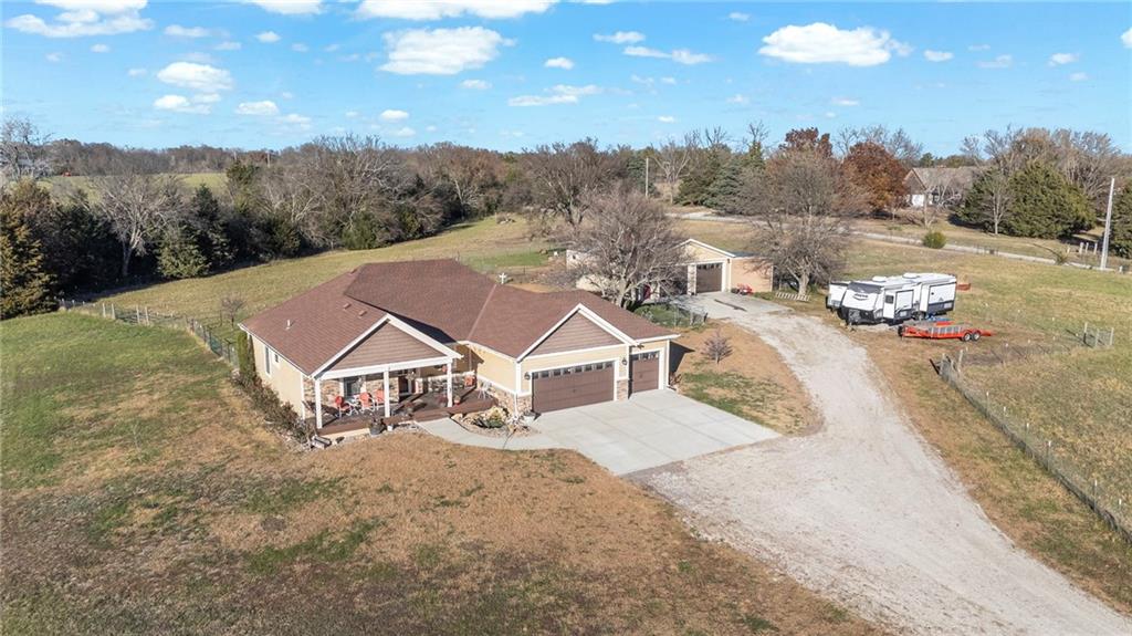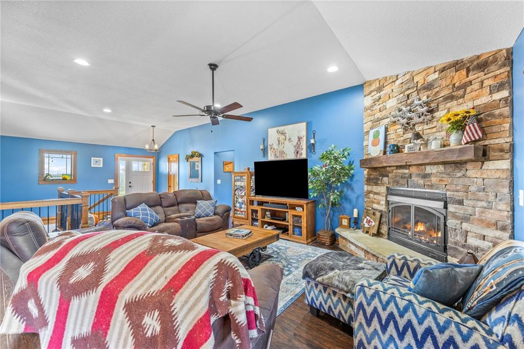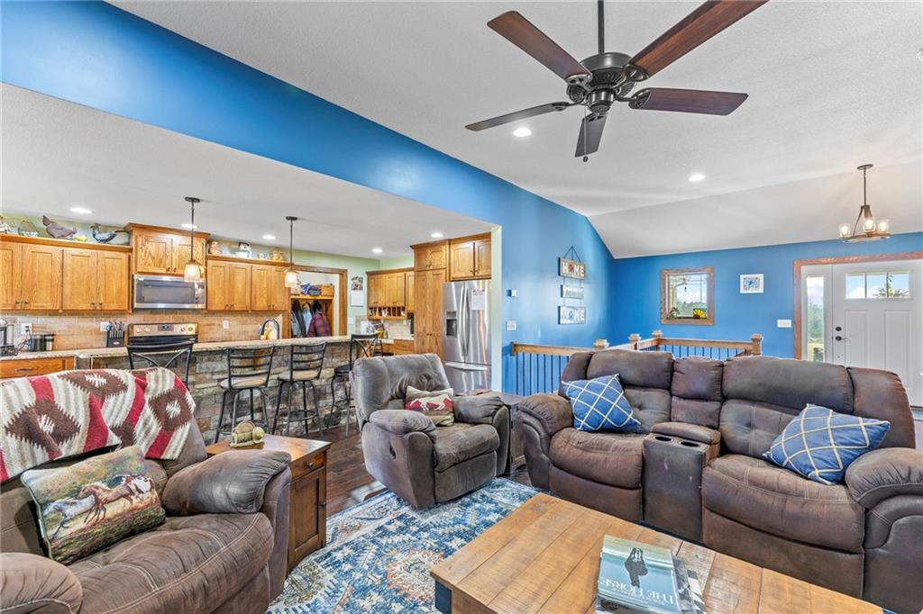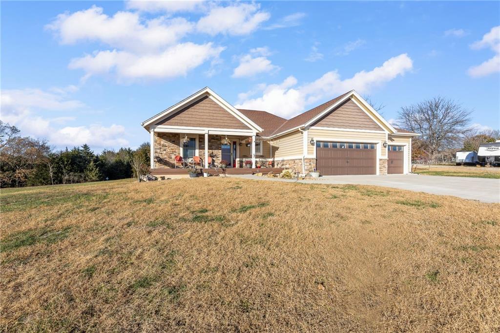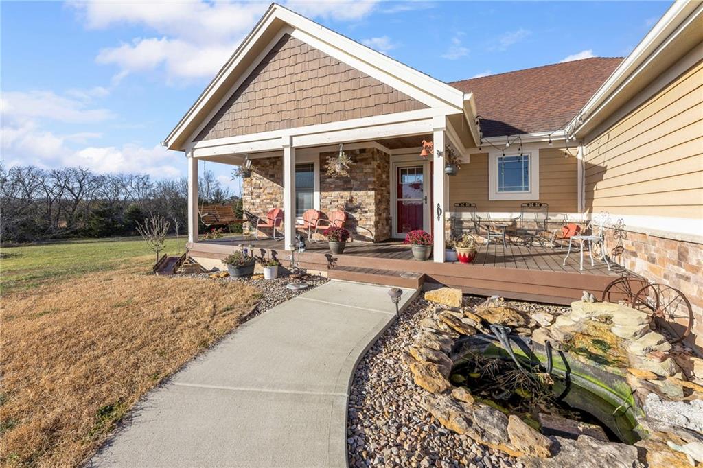 Welcome to this beautifully built, custom 4 bedroom, 2½ bath ranch/reverse 1.5 story home nestled on 9 lush acres, perfect for a growing family and their animals. Constructed with attention to quality and detail, including 2x6 construction, Anderson windows, and cellulose insulation, this home boasts remarkably low utility costs (averaging only $167 per month for electric). A welcoming composite covered deck invites you into an open floor plan where the gourmet kitchen shines with custom cabinets, an island, granite countertops, stainless steel appliances, and a huge walk-in pantry. The cozy great room features a stone gas fireplace and opens to a wonderful screened-in porch, making it ideal for entertaining. The main level also holds a luxurious primary en-suite with a large, tiled shower, soaking tub, double sinks, and a generous walk-in closet, plus a convenient first floor laundry, mudroom, and half bath, all flowing over durable laminate floors. The finished lower level expands your living space with a large family room, a kitchenette, 3 additional spacious bedrooms, a full bathroom, and a truly unique feature: a secret room behind a bookcase perfect for securing a gun safe (which stays) and other precious items. Outside, you'll find a 3 car oversized attached garage, a 30x30 fully insulated outbuilding with electricity, concrete floor and a lean-to, a patio with a built-in stone firepit, and a fenced yard, all set within the 9 acres of timber, pasture, and hay, including 3 fenced areas—a fabulous area to raise your family.