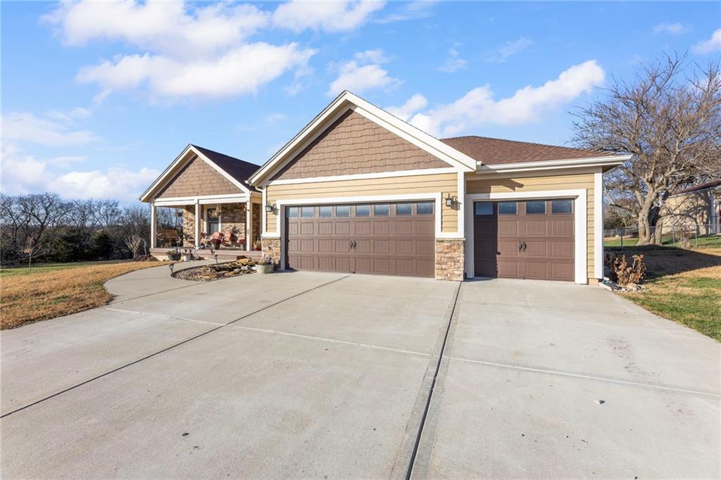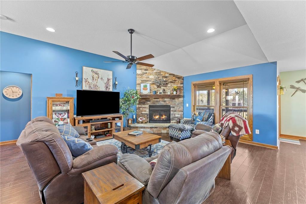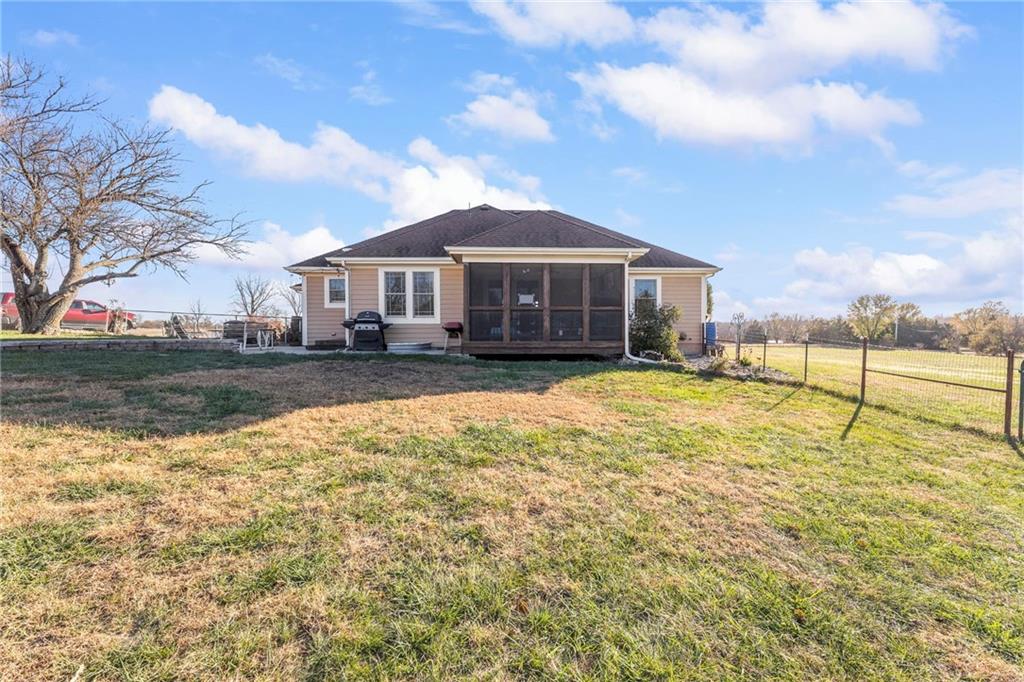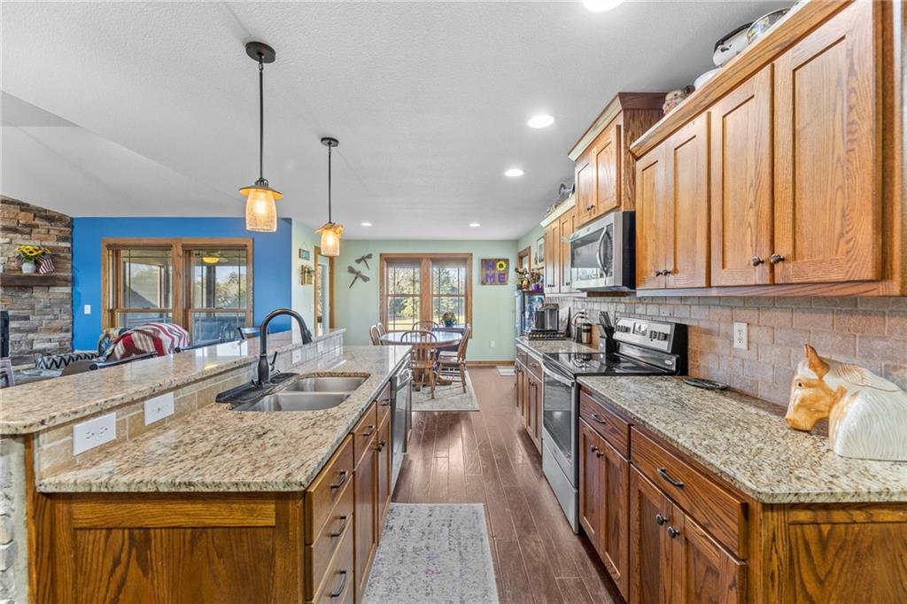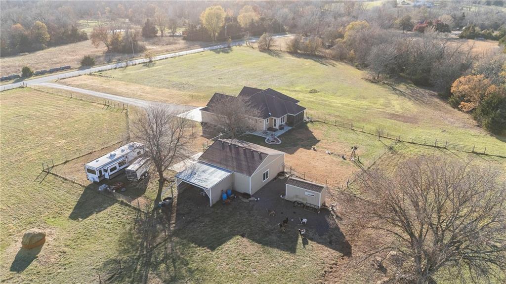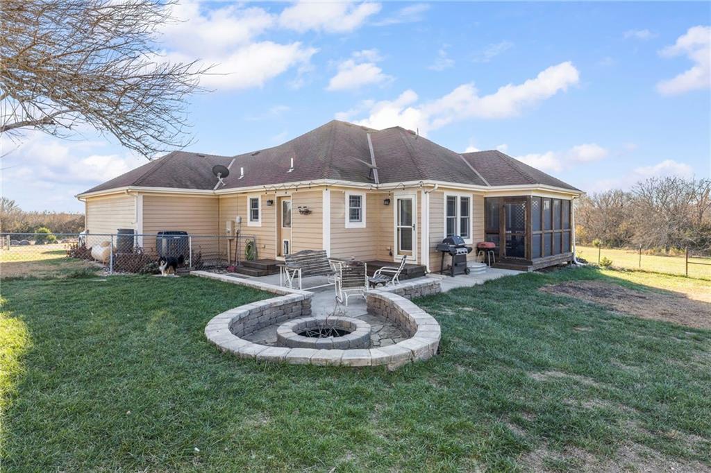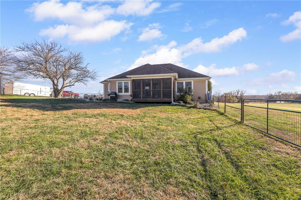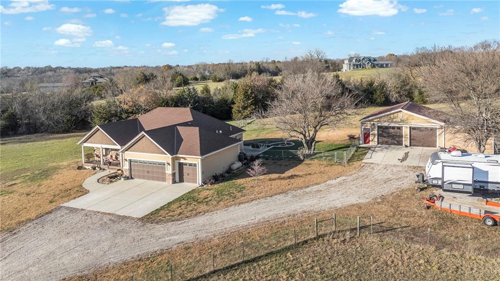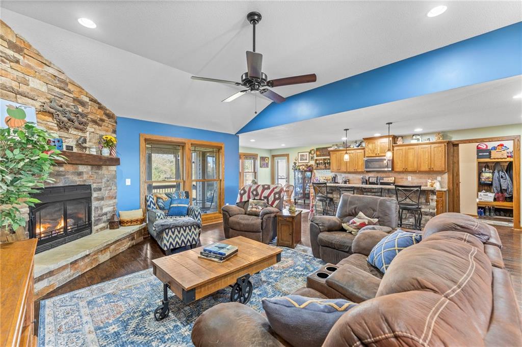 Welcome to this beautifully built, custom 4 bedroom, 2½ bath ranch/reverse 1.5 story home nestled on 9 lush acres, perfect for a growing family and their animals. Constructed with attention to quality and detail, including 2x6 construction, Anderson windows, and cellulose insulation, this home boasts remarkably low utility costs (averaging only $167 per month for electric). A welcoming composite covered deck invites you into an open floor plan where the gourmet kitchen shines with custom cabinets, an island, granite countertops, stainless steel appliances, and a huge walk-in pantry. The cozy great room features a stone gas fireplace and opens to a wonderful screened-in porch, making it ideal for entertaining. The main level also holds a luxurious primary en-suite with a large, tiled shower, soaking tub, double sinks, and a generous walk-in closet, plus a convenient first floor laundry, mudroom, and half bath, all flowing over durable laminate floors. The finished lower level expands your living space with a large family room, a kitchenette, 3 additional spacious bedrooms, a full bathroom, and a truly unique feature: a secret room behind a bookcase perfect for securing a gun safe (which stays) and other precious items. Outside, you'll find a 3 car oversized attached garage, a 30x30 fully insulated outbuilding with electricity, concrete floor and a lean-to, a patio with a built-in stone firepit, and a fenced yard, all set within the 9 acres of timber, pasture, and hay, including 3 fenced areas—a fabulous area to raise your family.