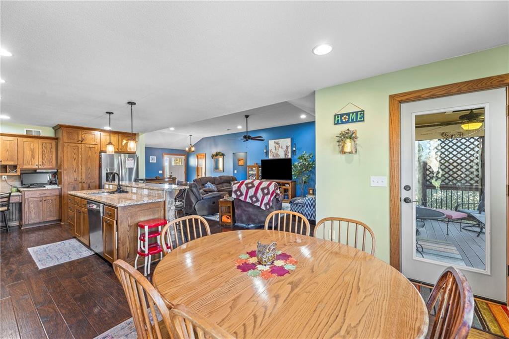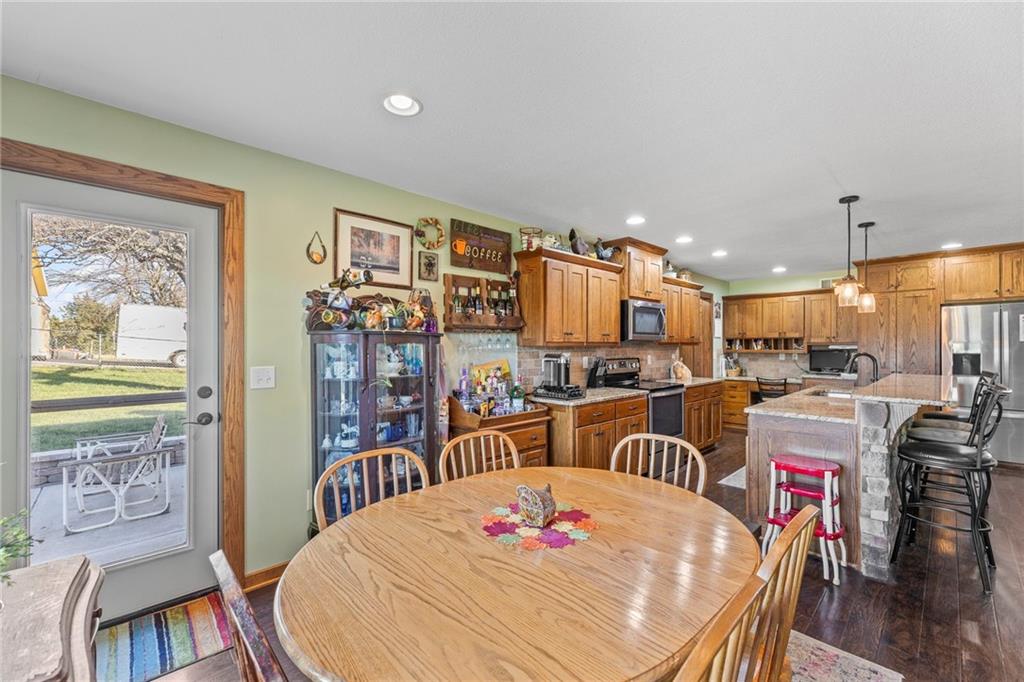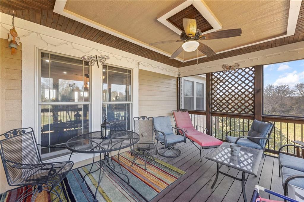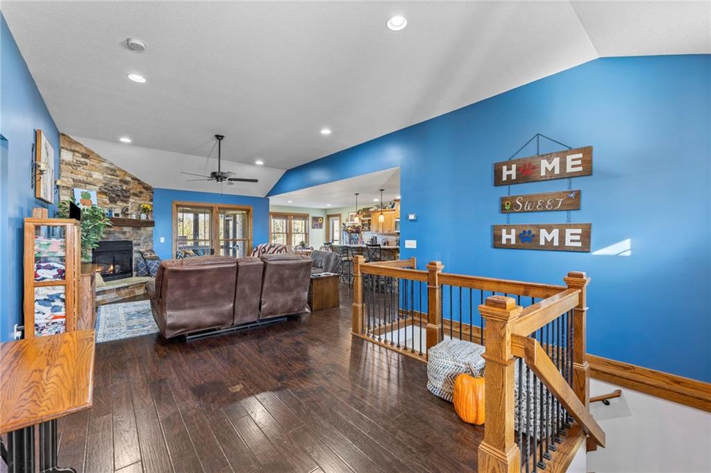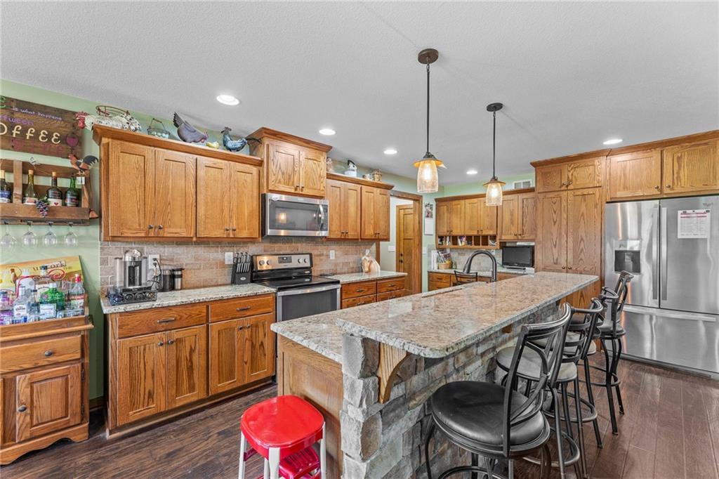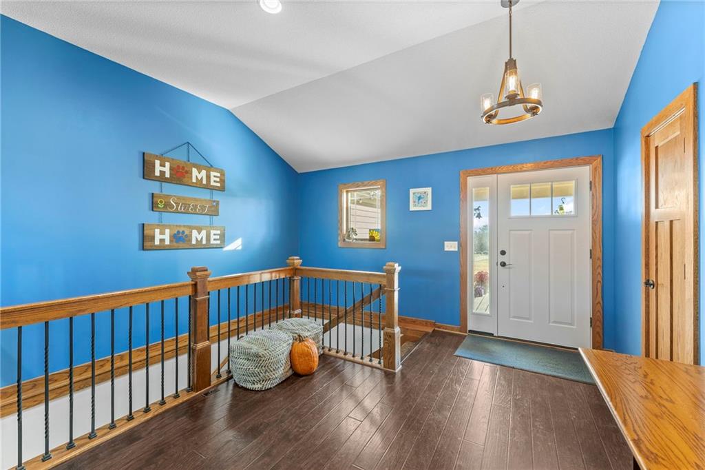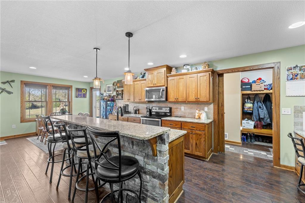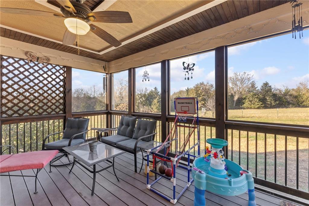 Welcome to this beautifully built, custom 4 bedroom, 2½ bath ranch/reverse 1.5 story home nestled on 9 lush acres, perfect for a growing family and their animals. Constructed with attention to quality and detail, including 2x6 construction, Anderson windows, and cellulose insulation, this home boasts remarkably low utility costs (averaging only $167 per month for electric). A welcoming composite covered deck invites you into an open floor plan where the gourmet kitchen shines with custom cabinets, an island, granite countertops, stainless steel appliances, and a huge walk-in pantry. The cozy great room features a stone gas fireplace and opens to a wonderful screened-in porch, making it ideal for entertaining. The main level also holds a luxurious primary en-suite with a large, tiled shower, soaking tub, double sinks, and a generous walk-in closet, plus a convenient first floor laundry, mudroom, and half bath, all flowing over durable laminate floors. The finished lower level expands your living space with a large family room, a kitchenette, 3 additional spacious bedrooms, a full bathroom, and a truly unique feature: a secret room behind a bookcase perfect for securing a gun safe (which stays) and other precious items. Outside, you'll find a 3 car oversized attached garage, a 30x30 fully insulated outbuilding with electricity, concrete floor and a lean-to, a patio with a built-in stone firepit, and a fenced yard, all set within the 9 acres of timber, pasture, and hay, including 3 fenced areas—a fabulous area to raise your family.