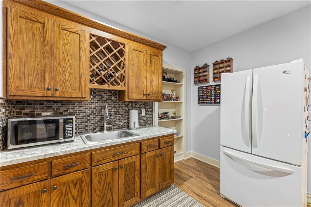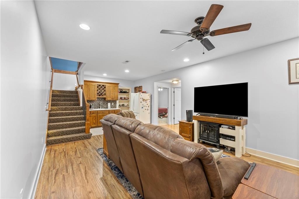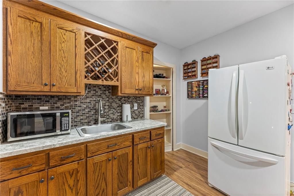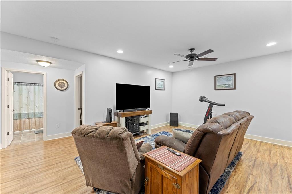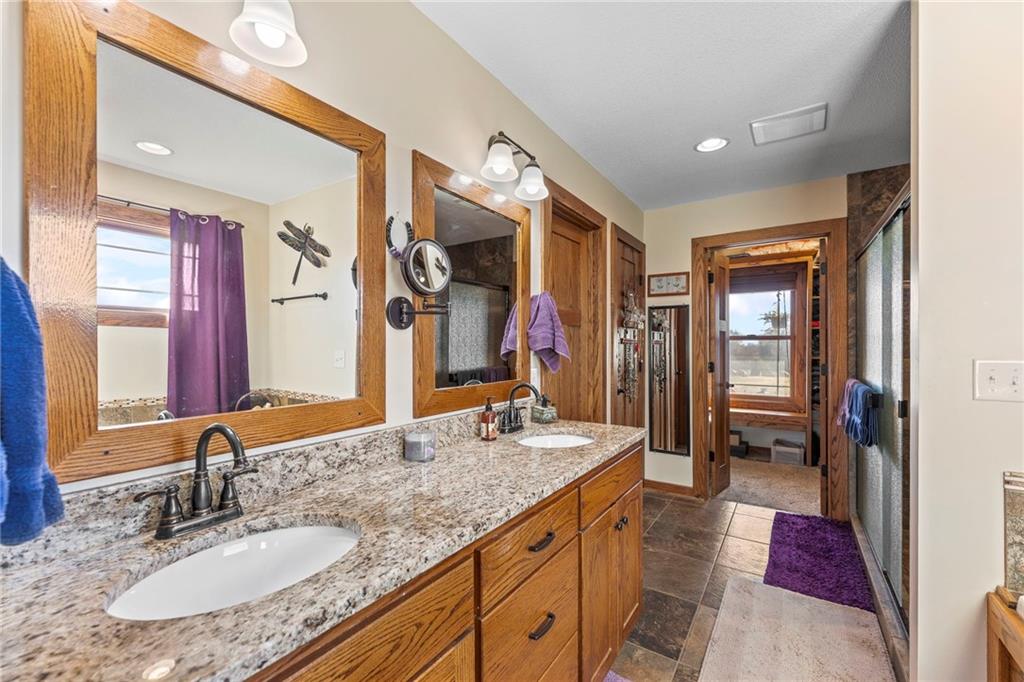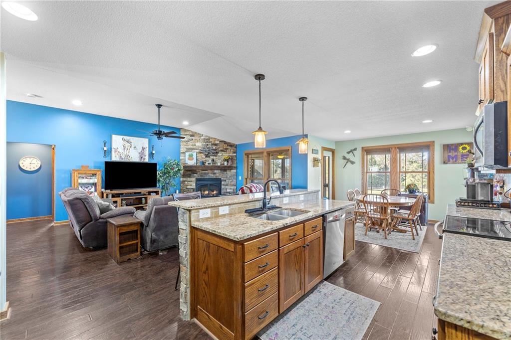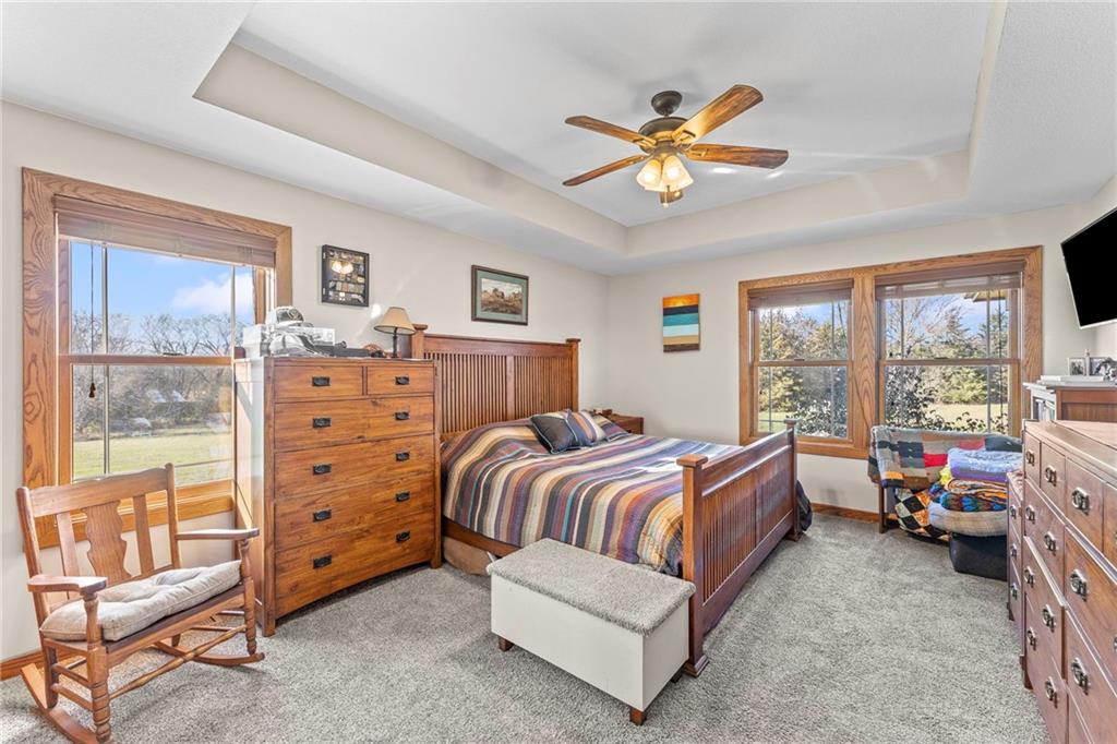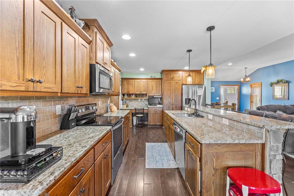Welcome to this beautifully built, custom 4 bedroom, 2½ bath ranch/reverse 1.5 story home nestled on 9 lush acres, perfect for a growing family and their animals. Constructed with attention to quality and detail, including 2x6 construction, Anderson windows, and cellulose insulation, this home boasts remarkably low utility costs (averaging only $167 per month for electric). A welcoming composite covered deck invites you into an open floor plan where the gourmet kitchen shines with custom cabinets, an island, granite countertops, stainless steel appliances, and a huge walk-in pantry. The cozy great room features a stone gas fireplace and opens to a wonderful screened-in porch, making it ideal for entertaining. The main level also holds a luxurious primary en-suite with a large, tiled shower, soaking tub, double sinks, and a generous walk-in closet, plus a convenient first floor laundry, mudroom, and half bath, all flowing over durable laminate floors. The finished lower level expands your living space with a large family room, a kitchenette, 3 additional spacious bedrooms, a full bathroom, and a truly unique feature: a secret room behind a bookcase perfect for securing a gun safe (which stays) and other precious items. Outside, you'll find a 3 car oversized attached garage, a 30x30 fully insulated outbuilding with electricity, concrete floor and a lean-to, a patio with a built-in stone firepit, and a fenced yard, all set within the 9 acres of timber, pasture, and hay, including 3 fenced areas—a fabulous area to raise your family.