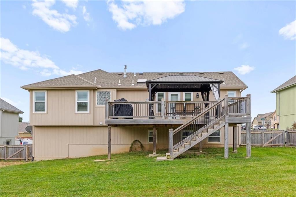From its thoughtful upgrades and flexible living spaces, this home offers a rare combination of turnkey condition and room to grow. This home is part of a pool-equipped subdivision, with the neighborhood pool just around the corner. Prairie elementary school is right down the street(2 blocks). The main level features a vaulted ceiling anchored by a corner gas fireplace, creating a grand yet cozy gathering space. The kitchen is thoughtfully organized with generous cabinet storage, a pantry, and modern stainless-steel appliances. A 23'×12' deck with a 9'×12' gazebo offers an elevated space for relaxing or entertaining. The primary suite impresses with a walk-in closet, dual vanities, and a relaxing whirlpool tub. A finished basement expands your living area with a recreation room and convenient half-bath, while an unfinished sub-basement (approx. 300 sq ft) provides substantial storage space. Large 2 car garage.
