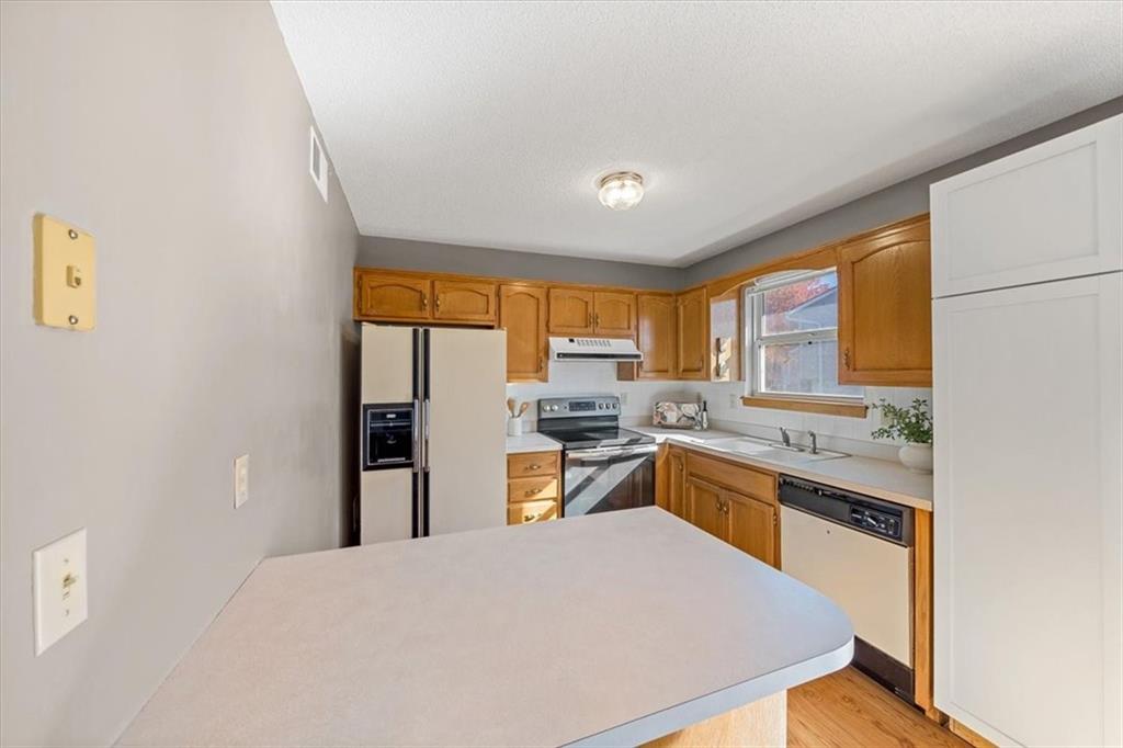 Adorable front-to-back split in sought-after Foxhaven! This well-maintained 3-bedroom, 2-bath home offers charm, comfort, and a spacious backyard in a great Raymore neighborhood. Step inside to find a bright, welcoming layout featuring a stylish new modern staircase, newer vinyl plank flooring, and beautiful trim details. The kitchen and dining area flow seamlessly together, while the generous lower level provides a versatile space perfect for a family room, play area, or home office—plus convenient laundry access. There is a two car garage, large driveway and additional storage can be found in the 4-foot crawl space beneath the living room. Lovingly cared for and move-in ready, this home is waiting for its next happy owners!