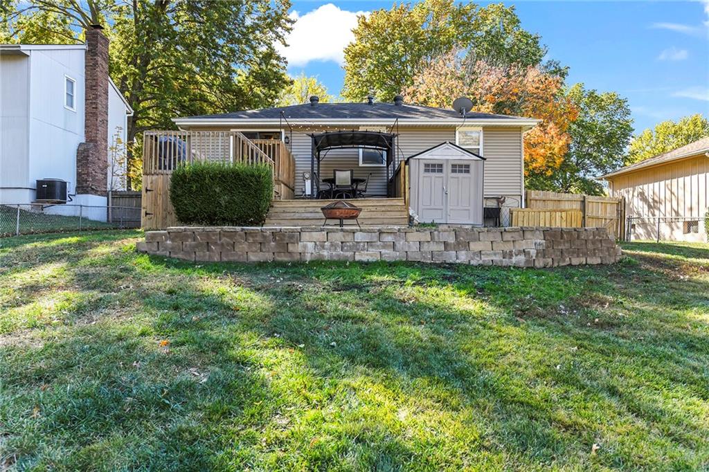 This darling Blue Springs raised ranch is cute as a button and loaded with great features. Freshly updated kitchen with new LVP flooring, painted cabinets and new granite countertops are just the start. Both bathrooms have also had recent renovations, new LVP flooring in all bedrooms, updated lighting and main level carpet just 2 years old. Finished lower level with additional rec or office space. Outside you will find an entertaining paradise with 2-tiered deck, pergola that stays with the home, plus patio. Don't miss the additional storage under the deck and the storage shed stays, too. Fenced yard offers plenty of space for kids or pets to play. Vinyl windows and siding make exterior maintenance a breeze. The convenient location of this home puts you just minutes from shopping and highway access. Two blocks from William Bryant elementary and a stone's throw from Blue Springs South High School and YMCA.