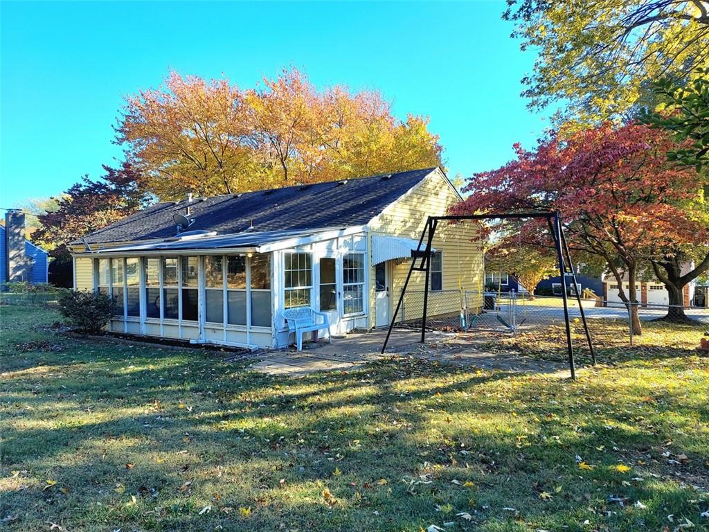 Lots of potential here...just cosmetics needed. Three bedroom/ 1 bath (second bath stubbed down) Beautiful refinished hardwood flooring throughout. Nice Dry basement with kitchenette, wonderful entertaining area with a little TLC. Bright sunny enclosed bonus room across the back of the house makes for extended living area. Newer HVAC too! Exterior is good with metal siding and large level fenced back yard. One car garage but double drive. Close to hiway and shopping!