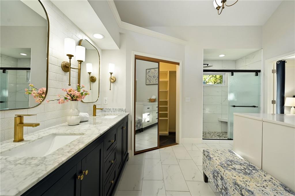 This beautifully updated 4-bedroom, 2.5-bath home blends timeless design with modern comfort. The main level offers an ideal layout with a spacious kitchen that opens to a warm hearth room perfect for everyday living. You'll also love the laundry room on the main level. Upstairs, the primary suite features a stunningly renovated bathroom and a thoughtfully designed walk-in closet. The additional bedrooms are spacious and versatile, ideal for family, guests, or a home office. The finished basement provides abundant flex space, while fresh exterior paint enhances the home’s curb appeal. Perfectly situated in the heart of Olathe’s Briarwood neighborhood—close to parks, schools, and local amenities—this home is move-in ready and beautifully refined.