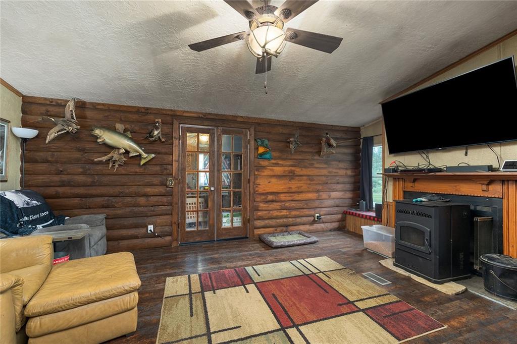 Welcome to your own private retreat on 20 beautiful acres! This log-sided manufactured home is nestled among rolling hills and mature timber. The land is mostly wooded, with a seasonal creek that runs at the bottom of the first hill — flowing during heavy rains. The property is partially fenced with barb wire along the sides and back. Step inside to find 3 spacious bedrooms and 2 full bathrooms. A formal living room greets you at the front of the home, leading into an open-concept kitchen and cozy family room. Home has newer vinyl plank tile. The pellet stove adds warmth and charm while helping reduce propane costs during the colder months. There is a central all-in-one electric heating and cooling system as well.. The home also features a durable metal roof for long-term peace of mind. Enjoy the outdoors from the large back deck, part of which is enclosed and currently used as a small workshop. Additional features include a 30-amp RV hookup, a second septic system near the campsite area, and a blue connex container with its own 200-amp electrical service—perfect for storage or future expansion. Whether you're looking for a full-time residence, weekend getaway, or hunting basecamp, this property has endless potential. This property qualifies for free deer tags every year.