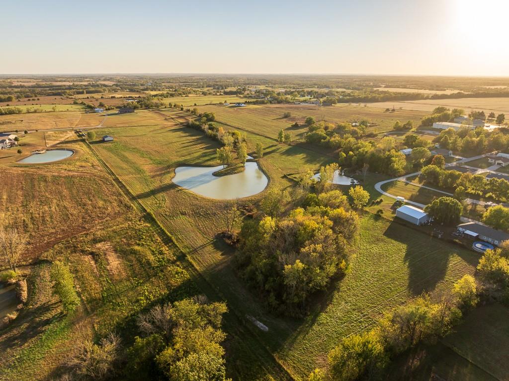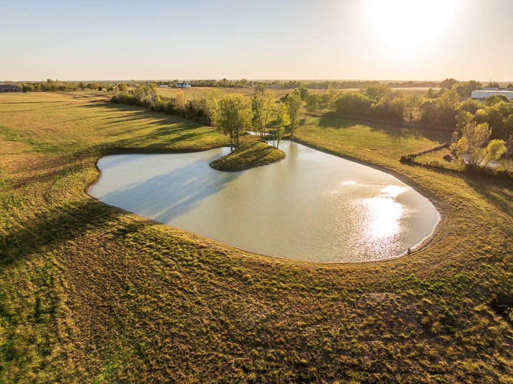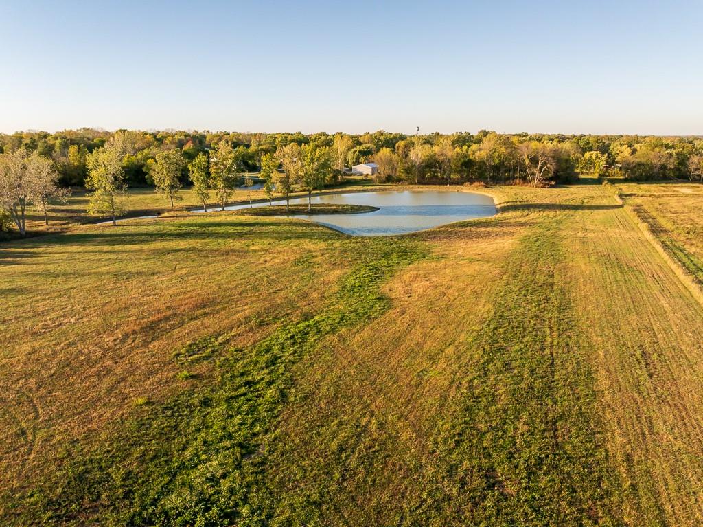 Located at the end of a blacktop dead end road on the south side of Garden City is this remarkable 21-acre tract. Mostly open, with good grass and perimeter fence, the ground is set up for pasture and/or hay, and with established water and a 30x40 shed, it would make an incredible hobby farm. The stunning 1-½-acre pond was cleaned out in 2024, and a long peninsula with mature shade trees extends into it, offering a gorgeous setting. Wooded areas include a long wooded draw and small woodlot north of the pond. Power and water utilities are available at the road, and a home could be positioned with spectacular views. The property was recently surveyed. It is just 35 minutes from Kansas City, and is located within the Sherwood School District.