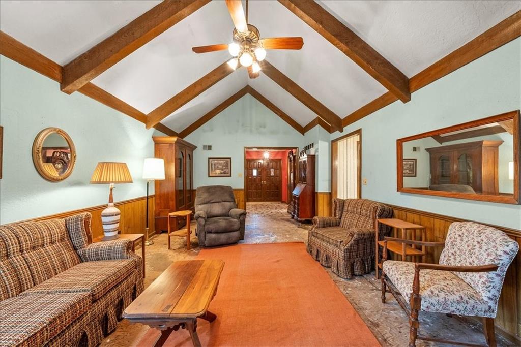 Welcome to this beautiful ranch home offering main level living at its finest, where comfort meets style in perfect harmony. The living room invites you in with its impressive cathedral ceiling, exposed wooden beams and fireplace, creating a charming and character-filled space. The sunroom off of the kitchen is a delightful spot, filled with natural light, ideal for relaxing or enjoying the view of the outdoors. The primary bedroom boasts a vaulted ceiling and full en suite bathroom. Downstairs, the walkup basement reveals an expansive workshop, a dream come true for hobbyists or those needing extra space for projects and storage. This versatile area offers endless possibilities for personalization and use. The outdoor space, set on a sizable lot, is perfect for gardening, or simply unwinding in your private sanctuary. Whether it's hosting friends for a barbecue or having a quiet evening under the stars, this yard is ready for your enjoyment.