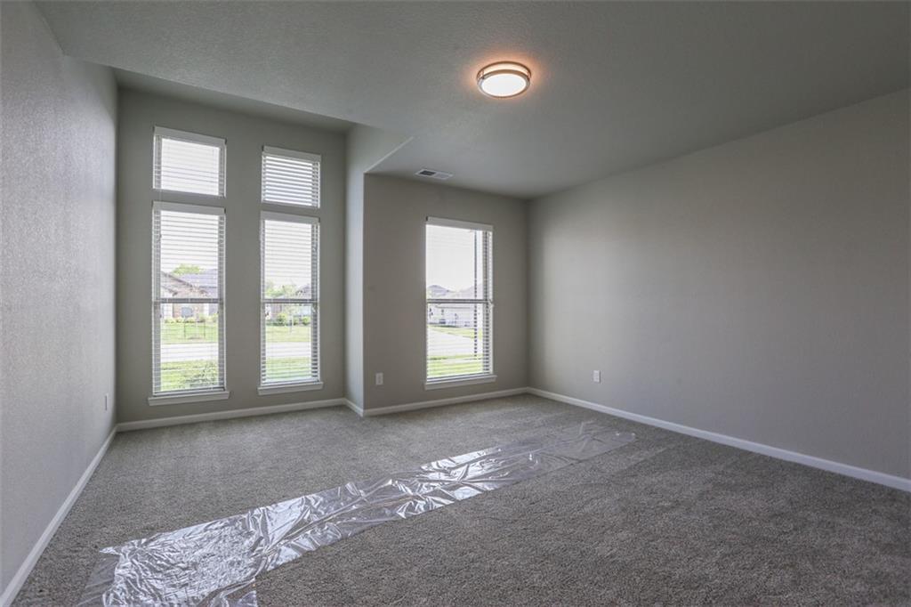 New in Stonebridge Trails, a Rodrock community - 4-bedroom, 3-bath Carrie plan by Arise Homes offers approximately 2,603 sq ft on a 0.25-acre lot with an attached 3-car garage. Each Arise home uses real brick and stone for the exterior for easy maintenance for years to come! This ranch home has an open-concept floor plan with 10-foot tall ceilings in the entry, main living area, and primary bedroom. The kitchen includes a large center island, black stainless-steel appliances, soft-close cabinetry and quartz countertops. The primary suite offers a spa-style bath with freestanding tub, walk-in glass shower and custom closet system. Energy-efficient windows and smart thermostat enhance comfort and utility savings. Storm shelter in garage. Enjoy community amenities including four swimming pools (one junior-Olympic size with slide and fountain), two clubhouses with fitness facility, sport courts, playgrounds, and connecting walking trails throughout the Stonebridge network. Prime Olathe location: 0.3 mi to Prairie Creek Elementary, 1.0 mi to Woodland Spring Middle School, 4.5 mi to Spring Hill High School, and 1.8 mi to Heritage Park’s 1,234 acres of trails, lake, and golf course. Everyday conveniences nearby—Starbucks and Price Chopper ~1.2 mi, Target and Hy-Vee ~2.3 mi, and quick access to I-35 and US-169. Home currently under construction – estimated completion March 2026.Photos of a previous build. Contact community agent for details on finishes, floor plan, and progress updates. Measurements, distances and taxers are approximate; buyer to verify all information.