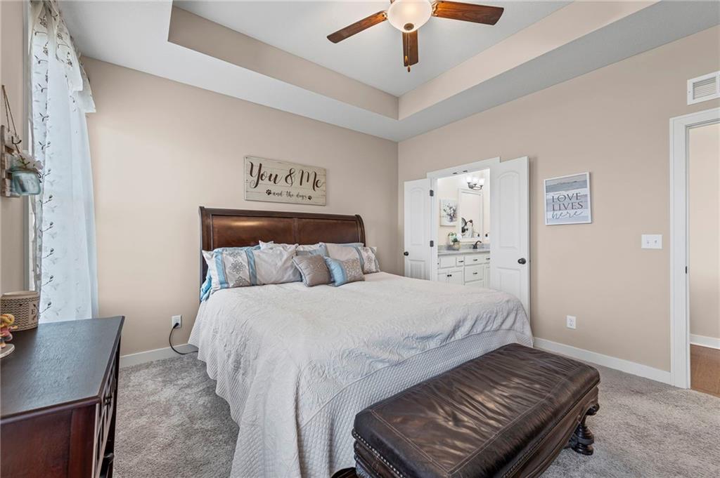 Discover this show-stopping Reverse 1.5 story in the sought-after Woodside Ridge community. This beauty perfectly blends luxury, comfort, and style. The open kitchen, dining, and great room create a bright, welcoming space for everyday living and entertaining. The main floor includes two bedrooms, highlighted by a stunning primary suite with spa-like bath and walk-in closet. The main-level laundry room, located off the 3-car garage, provides maximum convenience for everyday living. The finished walk-out basement expands your living space with a large rec room, two bedrooms, and a full bath. Step outside to your deck or patio and enjoy peaceful views of the secluded backyard in one of the quietest neighborhoods that's still near all the action! Just a stone’s throw from the walking trail and minutes from shopping, dining, and schools, this home also offers incredible community amenities, including a resort-style pool, pickleball court, clubhouse, and hammock lounge.