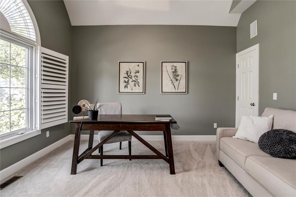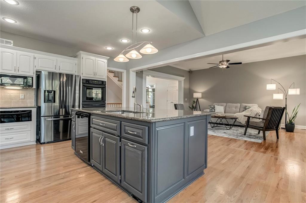 Gather for the holidays in this beautifully renovated home in western Shawnee. Ideal for entertaining, the living room flows into the hearth room with vaulted ceilings, cozy fireplace and large windows to watch the seasons change . The kitchen centers the area with a large island, double oven, and a hidden pantry. Move outside to the screened-in porch, deck and brick patio to enjoy a bonfire. The outdoors area is lined with landscaping, retaining wall paths, and trees to create a private retreat. Back inside, invited guests can stay in the main floor bedroom with full bath. Upstairs, the primary suite features dual closets, and primary bathroom suite; one bedroom with a private bathroom; and two additional bedrooms connect with a Jack and Jill bathroom. The finished lower level is open for possibilities with a large room ideal for an in-home theatre and a secondary room with daylight windows which could be set up for a game room with a pool table or exercise space. Plenty of room to add on with 1,200 square feet of storage space. Main floor includes a large office with storage (or another bedroom) and formal dining space and a large laundry/mud room with extra shelves and storage cabinets. The 3-car garage includes an extended area for long vehicles, bikes, or tools. Recent renovations include added hardwood floors, carpet throughout, bathroom and laundry room tile; freshly painted cabinets, walls, and trim; new 8ft garage doors; updated landscaping; and new roof. Just minutes from De Soto school district’s award-winning schools - Mill Valley High School, local dining, and highway access. Schedule your private tour today and experience the ultimate home for entertaining and everyday living.