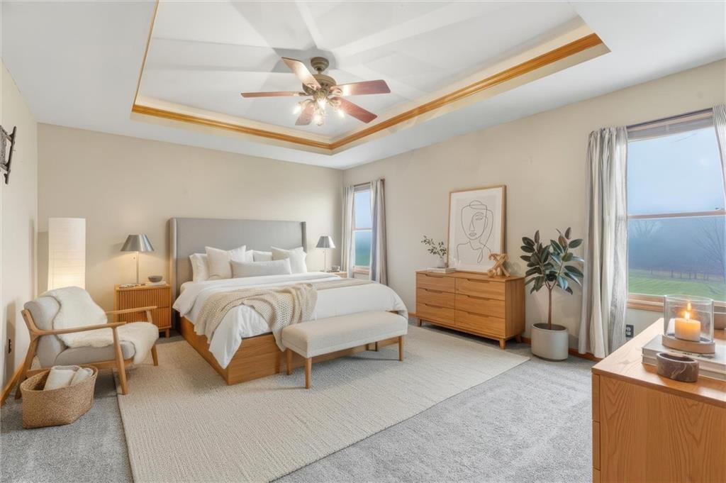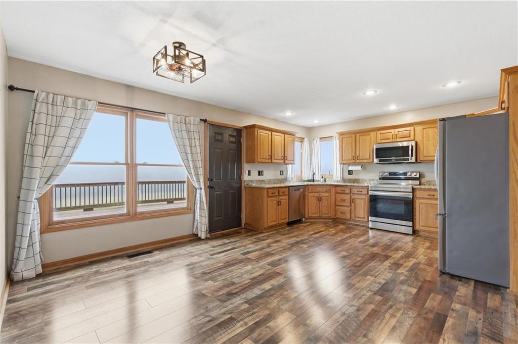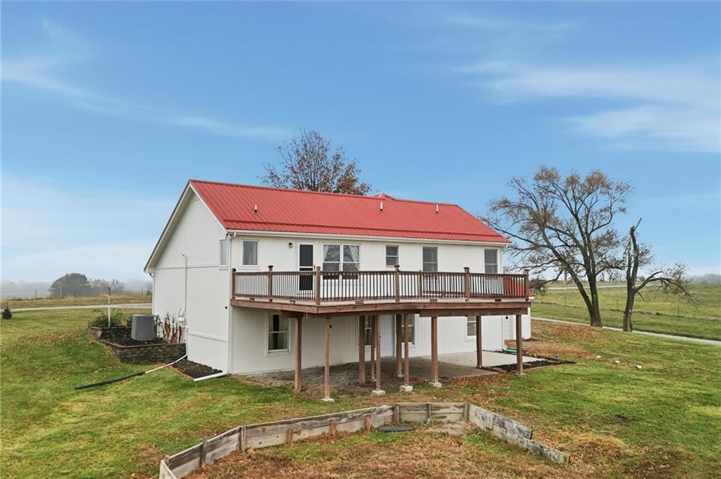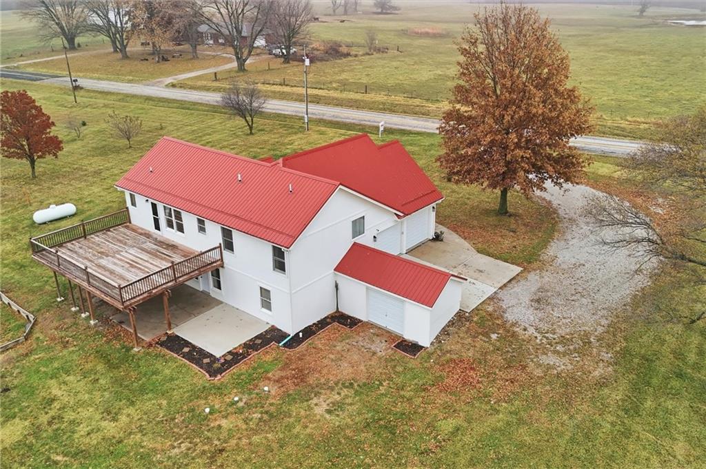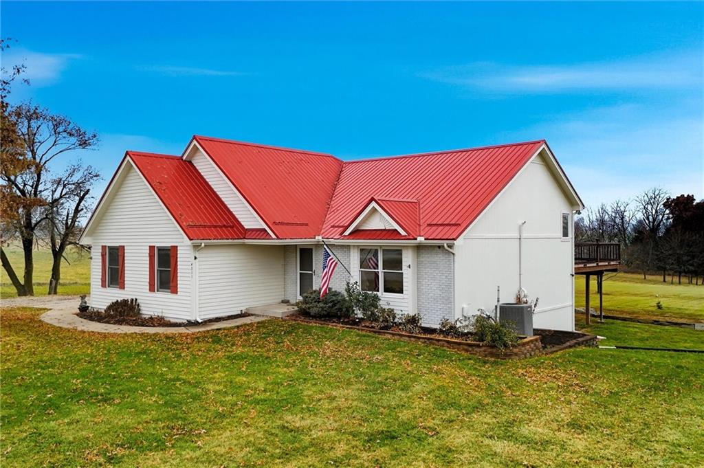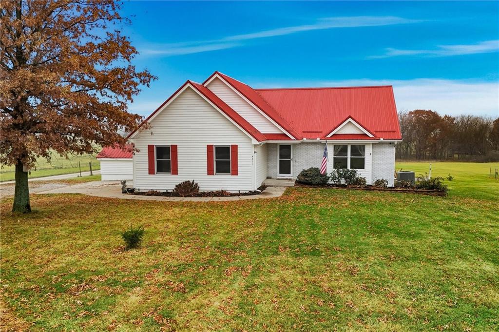 Welcome home to your country retreat on 4.92 picturesque acres! This front-to-back split offers a perfect blend of modern comfort and peaceful rural living, with a metal roof, three garages, and panoramic country views in every direction. From the vaulted ceilings and open living space to the oversized deck overlooking rolling acreage, every detail invites you to relax and enjoy the serenity of country life. The main level welcomes you with a bright living room, vaulted ceilings, and natural light that flows into the upper-level kitchen and dining area. The kitchen offers abundant cabinetry, pantry storage, and access to the expansive rear deck—perfect for entertaining or quiet mornings watching wildlife. Down the hall is a convenient half bath and a spacious primary suite featuring a private full bath and an oversized walk-in/step-up closet designed for functionality and charm. The lower level provides a cozy family room that walks out to the patio, plus two additional bedrooms and a full bath—ideal for guests or family separation. Continue to the sub-basement for additional storage, hobby space, or workshop options. A two-car side-entry garage provides direct main-level access, while a third utility garage serves perfectly for equipment, tools, or recreational vehicles. Enjoy a corner lot setting with plenty of room for future outbuildings, gardening, or a small hobby farm. Whether you envision adding a barn, expanding outdoor living, or simply enjoying the privacy and space, this property is built for flexibility and long-term value. Solid construction, a durable metal roof, and thoughtful design make this an ideal opportunity for your next chapter of country living.