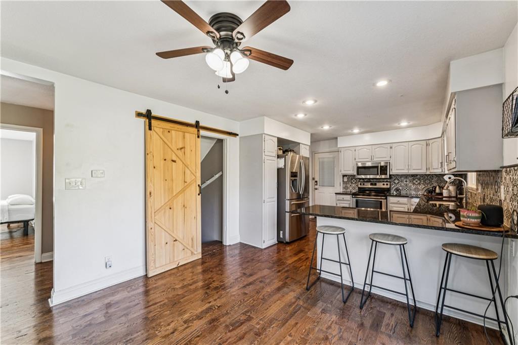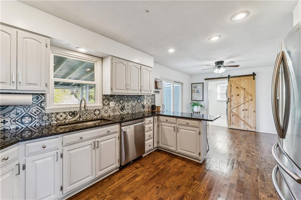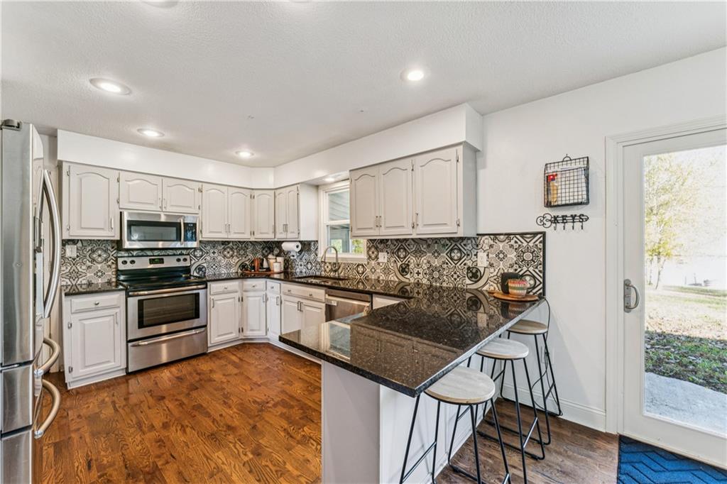 Amazing MOVE in ready acreage home!! You can not find a home in Johnson County on almost 5 acres at this SMOKING HOT price. This home features a Main Floor Primary Suite and Main floor Laundry!! True one floor living if needed. Home was remodeled a couple years ago and its amazing!! Family room has beautiful fireplace, Vaulted ceilings and beautiful hardwood floors. Formal Dining room open to family room area its HUGE for all your family dinners. Kitchen is perfect for all your entertaining needs, granite, tons of cabinets, Large eat in area also! Upstairs features 2 HUGE bedrooms and full bath. Both bedrooms have MASSIVE walk in closets. Back of the house has a large covered/screened patio that wraps around the home. Outbuilding has enough room to park 3 cars or tons of space for all your projects. Acreage has lots of trees and Openings thru out. Country living is ready for you!