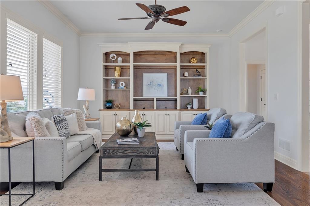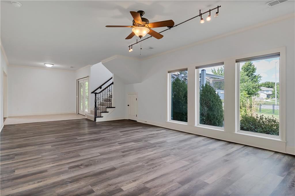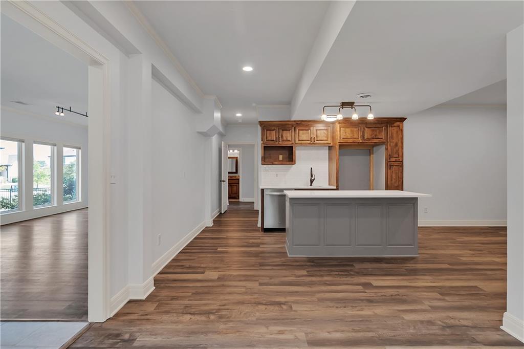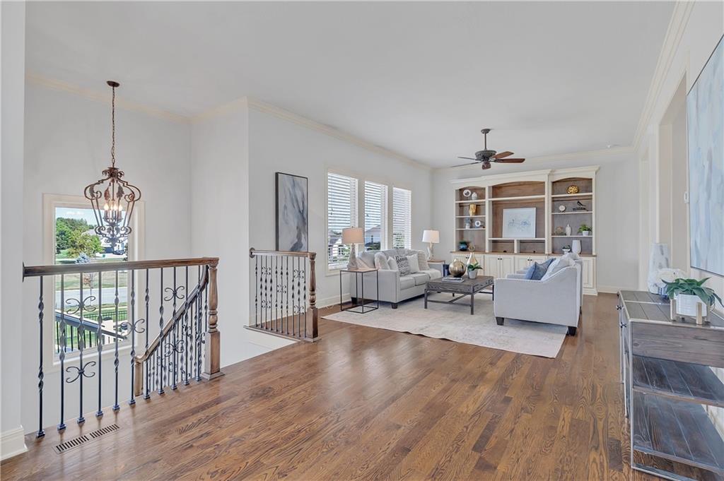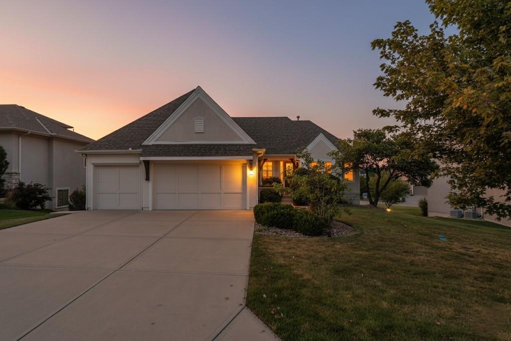 Great value in desirable WatersEdge! This 4 bedroom, 3 bath well maintained home showcases exceptional quality, hardwood floors throughout the main level, and peaceful water views from the deck, great room, and primary suite. The four-sided stucco exterior with stone trim is enhanced by a new roof with oversized gutters and downspouts (2023) and new exterior paint (2024). Outdoor living is easy on the screened deck with composite decking and stairs, or on the covered patio off the walkout lower level. The landscaped yard features mature trees and shrubs, a fenced backyard, and an inground sprinkler system for easy maintenance. Inside, the kitchen island boasts granite countertops, a gas cooktop, new microwave and dishwasher (2023), and a warming drawer. The main-level primary suite offers hardwood flooring and walk-in closet, while fresh interior paint and new bedroom and stair carpet (2025) add a clean, updated feel. The finished lower level is perfect for entertaining or guests, featuring two bedrooms, a large rec room, quartz countertop mini-kitchen with dishwasher and refrigerator space, a family room with electric stone fireplace, and durable LVP flooring. Additional highlights include a heated and air-conditioned 3-car garage with LED lighting, power screen on the single bay, and utility sink; a security system with Ring entry camera; and a convenient laundry room with sink and cabinetry. Nestled on a quiet cul-de-sac lot with a south-facing driveway, this home offers comfort, quality, and the perfect opportunity to make it your own.
