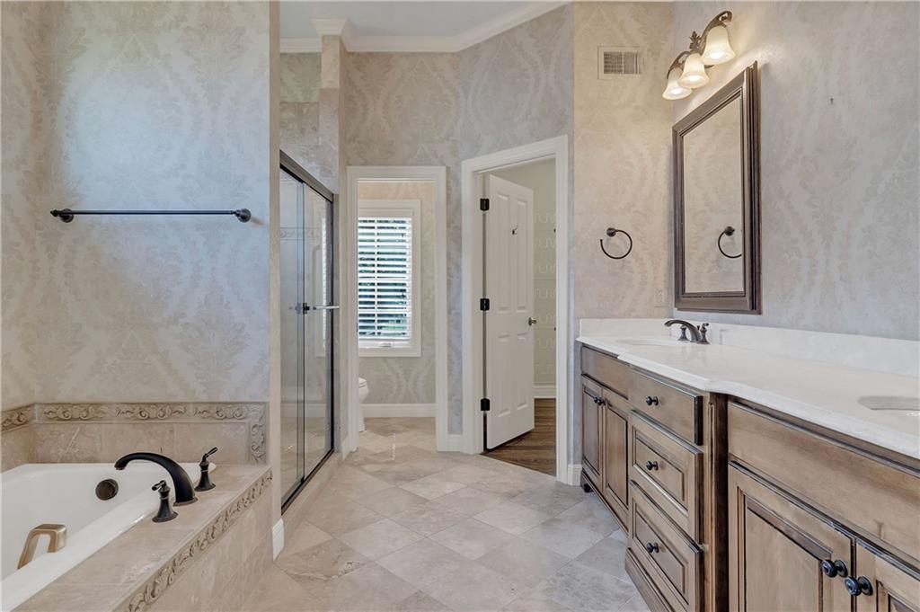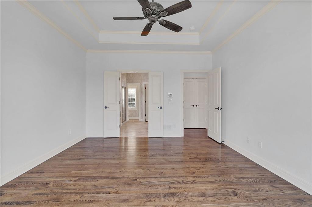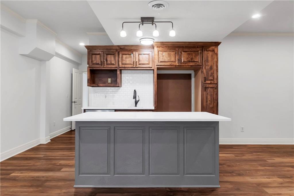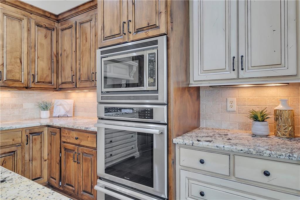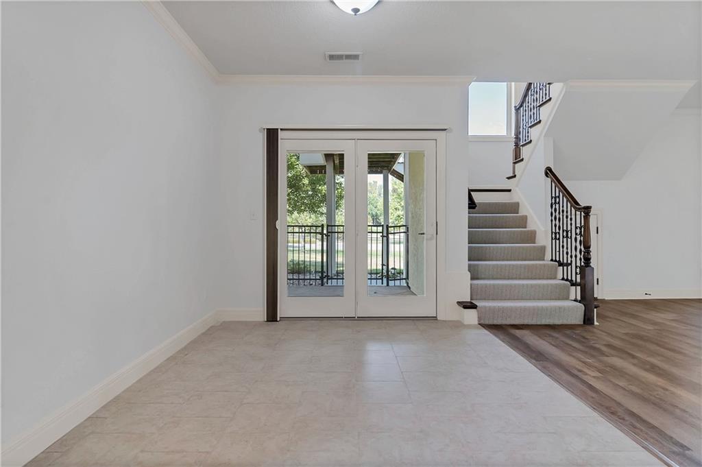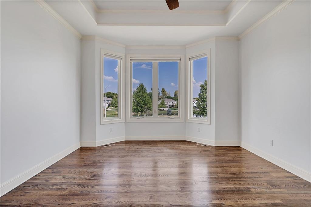Great value in desirable WatersEdge! This 4 bedroom, 3 bath well maintained home showcases exceptional quality, hardwood floors throughout the main level, and peaceful water views from the deck, great room, and primary suite. The four-sided stucco exterior with stone trim is enhanced by a new roof with oversized gutters and downspouts (2023) and new exterior paint (2024). Outdoor living is easy on the screened deck with composite decking and stairs, or on the covered patio off the walkout lower level. The landscaped yard features mature trees and shrubs, a fenced backyard, and an inground sprinkler system for easy maintenance. Inside, the kitchen island boasts granite countertops, a gas cooktop, new microwave and dishwasher (2023), and a warming drawer. The main-level primary suite offers hardwood flooring and walk-in closet, while fresh interior paint and new bedroom and stair carpet (2025) add a clean, updated feel. The finished lower level is perfect for entertaining or guests, featuring two bedrooms, a large rec room, quartz countertop mini-kitchen with dishwasher and refrigerator space, a family room with electric stone fireplace, and durable LVP flooring. Additional highlights include a heated and air-conditioned 3-car garage with LED lighting, power screen on the single bay, and utility sink; a security system with Ring entry camera; and a convenient laundry room with sink and cabinetry. Nestled on a quiet cul-de-sac lot with a south-facing driveway, this home offers comfort, quality, and the perfect opportunity to make it your own.