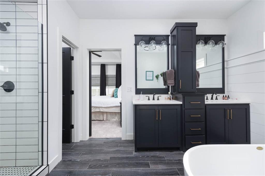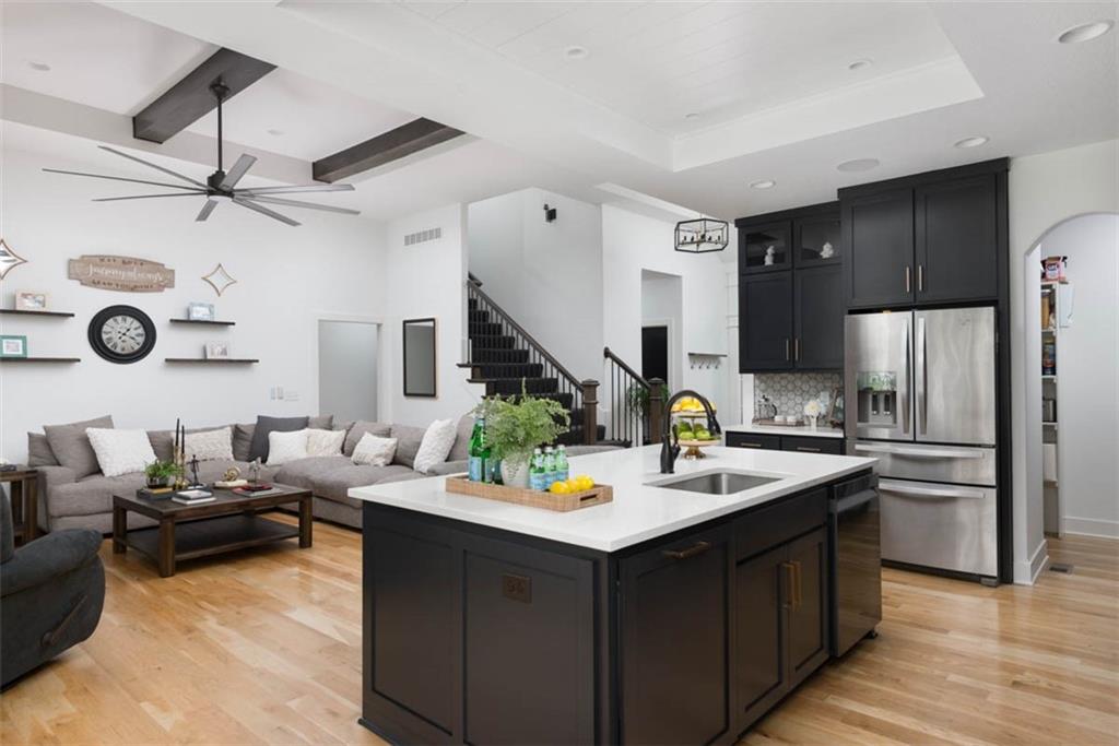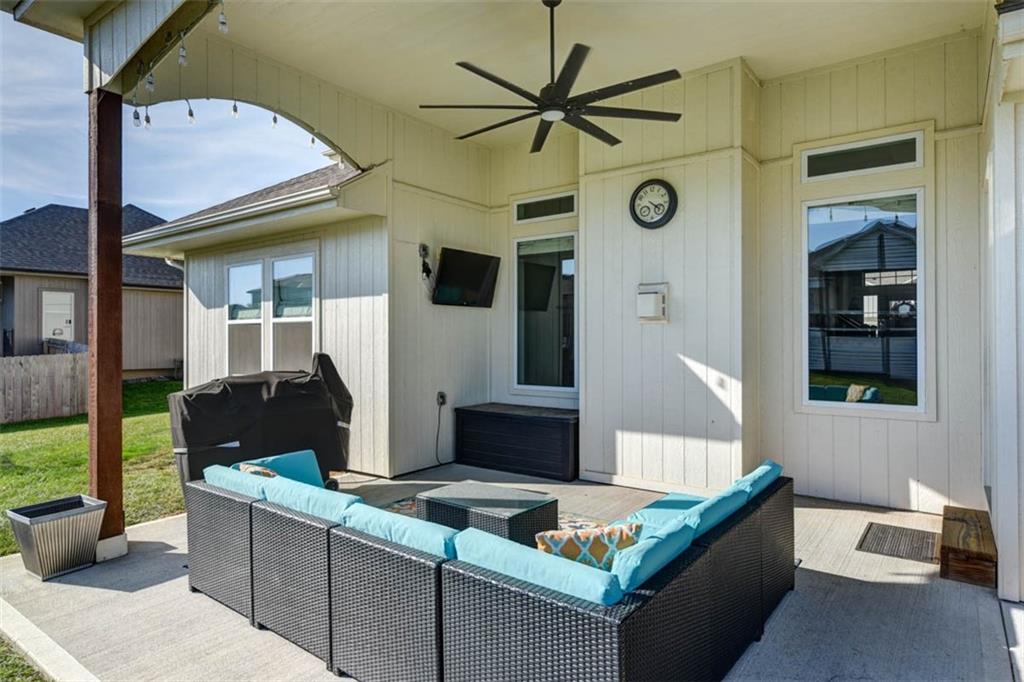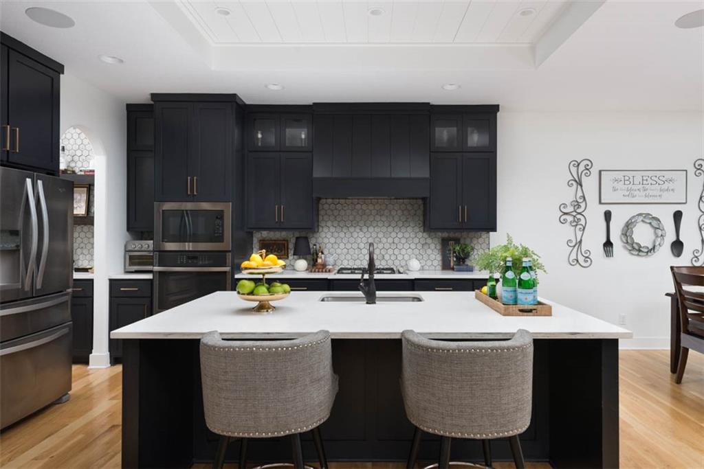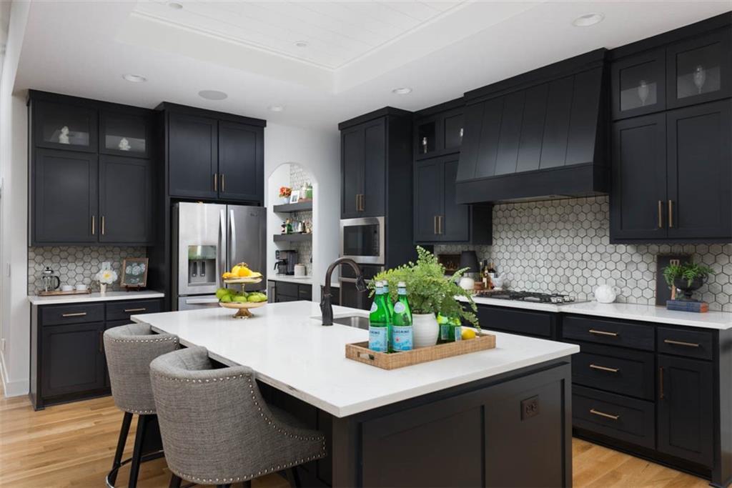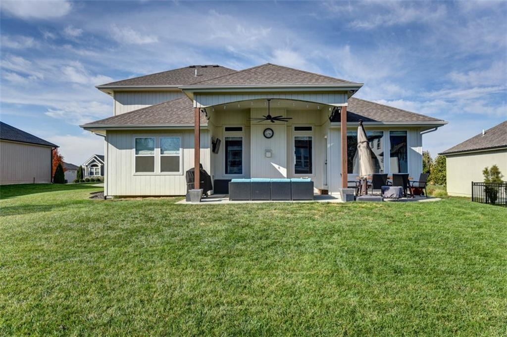 Impeccably designed and beautifully maintained, this exquisite 1.5-story home in Lee’s Summit captures modern elegance and refined comfort at every turn. From its sophisticated exterior and manicured landscaping to the thoughtfully curated interior, every detail reflects quality craftsmanship and timeless design. Step inside to soaring ceilings, rich hardwood floors, and sunlit spaces that immediately set a tone of understated luxury. The living room stuns with a striking fireplace and walls of windows that bathe the room in natural light. The open-concept layout flows effortlessly into the kitchen that makes an unforgettable first impression with rich dark cabinetry, sleek countertops, and an eye-catching hex-tile backsplash that anchors the space in style. A large center island invites conversation, while the incredible walk-in pantry and separate prep area elevate everyday living with seamless function. The main-floor primary suite offers a serene retreat, with an airy layout, spa-inspired ensuite featuring dual vanities, a freestanding soaking tub, and a spacious walk-in closet designed for both function and style. Upstairs, each secondary bedroom showcases high-end finishes, generous proportions, and access to beautifully appointed bathrooms. The finished lower level is equally impressive, designed for gathering and unwinding. A full wet bar with and wine room make it perfect for hosting, while a spacious living area and flexible 5th bedroom option offer endless possibilities. Outdoors, enjoy an extended living space on the covered patio overlooking a beautifully fenced yard. Every inch of this home feels intentional, blending craftsmanship and livable luxury in a way that stands out. This home offers the rare combination of modern sophistication and everyday warmth, a true standout in one of Lee’s Summit’s most sought-after communities!