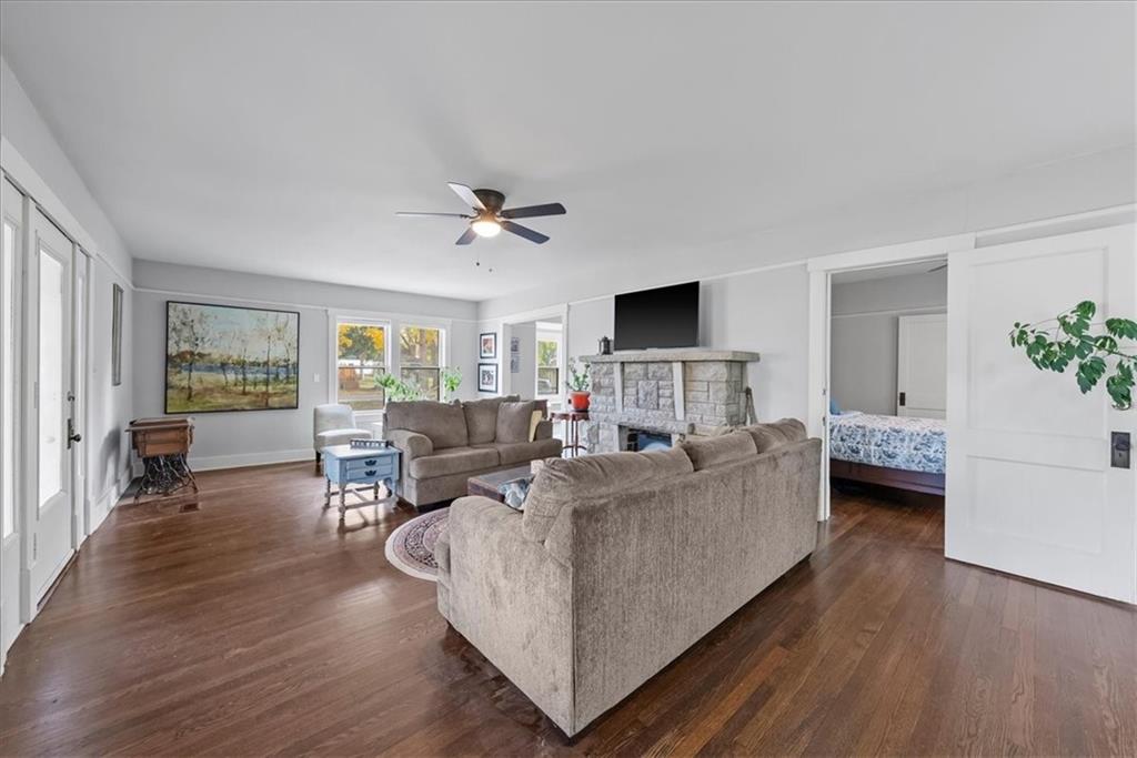 This delightfully charming 2-story home was built in 1900 and is located near Grandview's historic district, just blocks from downtown's shops and restaurants and offers easy highway access, just minutes away. Upon arrival, this spectacular 1.2 acre double lot impresses, with mature trees providing shade and a serene park-like setting (includes adjoining lot 803 High Grove). The detached garage offers parking, additional storage or a workshop space. On the exterior is a blend of modern convenience with the vinyl siding and a touch of vintage personality with scallop siding at the gables that honor the home's heritage. The sunroom in the front of the home is perfect for enjoying morning coffee or relaxing with a good book. The living room welcomes its guests with beautiful hardwood floors throughout and an electric fireplace for cozy ambiance. Flow into the dining room, which features a bay window seat and built-in buffet, ideal for entertaining. The kitchen, in the back of the home, opens to a breakfast nook for casual dining on one side and leads out into a closed in back porch area that gives conservatory energy with its many windows. Continue through the kitchen, past the powder room, to a potential primary bedroom, which offers up the convenience of single-floor living, complete with main-level laundry. Head upstairs from the dining to find four more spacious bedrooms with generous closets and tall ceilings that create an airy, open feel plus a full bathroom to serve any inhabitants needs. Picture rails provide an old-timey nostalgia as they preserve the original plaster walls. With a newer AC and excellent overall condition, this five-bedroom, 1.5 bathroom home has been lovingly maintained and is ready for its next chapter. Pre-inspections have been conducted with reports available upon request for buyers' peace of mind and seller's desire to sell in it's present condition.