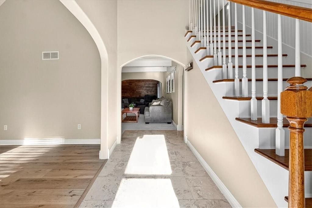 Welcome to this spacious & inviting 1.5 story home in the award winning Olathe School District, located just minutes from highway access, shopping, dining, and more! This 3 bedroom, 2 bathroom, 2 car garage GEM offers desirable ONE LEVEL LIVING with the primary bedroom on the main level, situated on a large lot in a picturesque, tree-lined cul-de-sac. Step inside & you’ll instantly appreciate the open floor plan creating a warm & inviting space, plus SO MUCH CHARACTER featuring arched doorways, vaulted ceilings, stone curved fireplace, rustic beams, and a soaring wooden accent wall. Conveniently laid out, each room flows effortlessly into the next, providing plenty of space to spread out. Enjoy meal prep and entertaining in the eat-in kitchen, while the formal dining room is perfect for special occasions. Upstairs, you’ll find two additional bedrooms and a full bath—ideal for family, guests, or a home office. Love the outdoors? Step out back to beautiful mature trees, storage shed & large deck overlooking the expansive backyard, great for relaxing or hosting barbecues. This home is truly move-in ready with freshly painted walls, newer carpet and LVP flooring, new wood siding, new chimney, and recently stained deck. Plus, enjoy peace of mind with a newer ROOF and HVAC system, as well as knowing the extensive foundation work has already been completed with a transferable lifetime warranty. All of this in an unbeatable location, near everything Johnson County has to offer, yet nestled in a quiet, highly sought after community, providing both privacy & accessibility. This home provides a fantastic combination of character, space, & convenience. Schedule your private showing NOW & see what makes it truly exceptional!