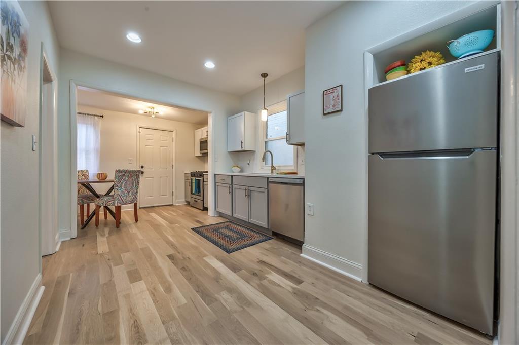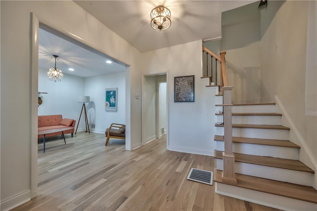 Timeless KC architecture meets modern joy in this gorgeous Pendleton Heights Shirtwaist. Stepping inside feels simply happy — bright, welcoming spaces with brand new natural white oak floors that flow throughout, complemented by a striking white oak staircase. The classic layout features a versatile first-floor bedroom that readily serves as a dining room, echoing how these historic homes were originally lived in. The kitchen is a blend of style and heritage, with crisp new cabinets, granite counters, a tiled backsplash, stainless appliances, and lighting that channels authentic Shirtwaist charm. Upstairs, you’ll find three more spacious bedrooms and another updated bath. Thoughtful laundry options include space for hookups in the first-floor bathroom closet (for a washer/dryer combo unit) and in the fresh/clean basement, as is traditional. Discover your private oasis: a newly built, oversized wood deck nearly as wide as the house itself — ideal for quiet evenings or weekend brunch. The inviting front porch is made for slowing down and watching the friendly neighborhood roll by. Live at the heart of Kansas City’s vibrant historic community. Just around the corner is the beloved Pendleton Heights Community Orchard, with Cliff Drive and Kessler Park offering trails, biking, and disc golf. This close-knit neighborhood also hosts “Coffee & Meet Your Neighbor” events — easy, welcoming ways to connect and become part of the community. Plus, it’s only minutes to the River Market, the Crossroads, and downtown KC. Zillow estimates the homes on either side are valued above $300K.