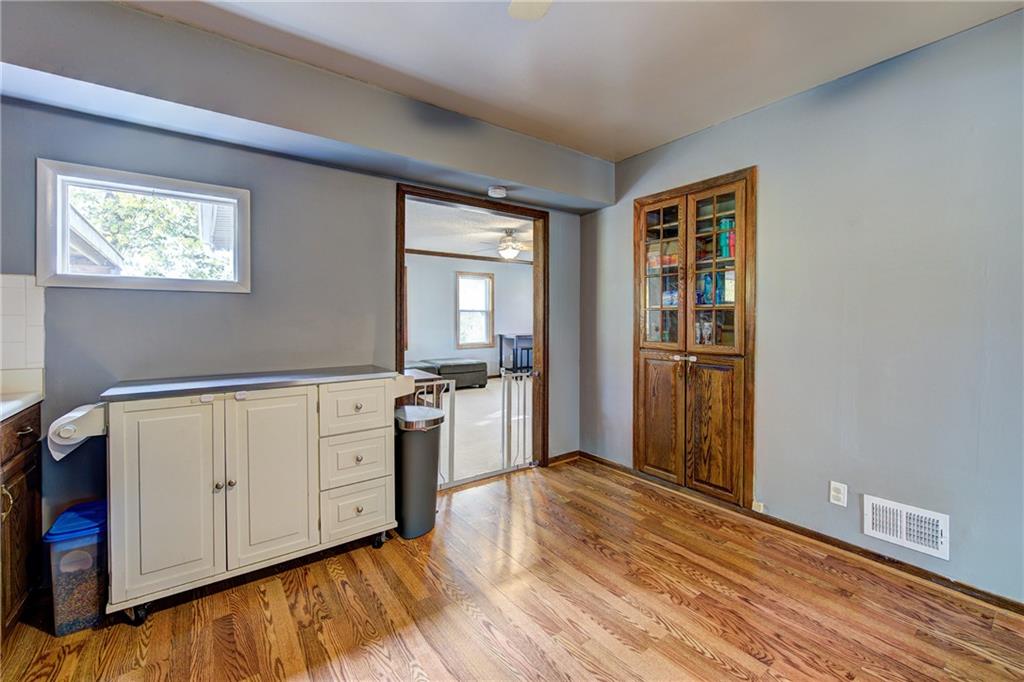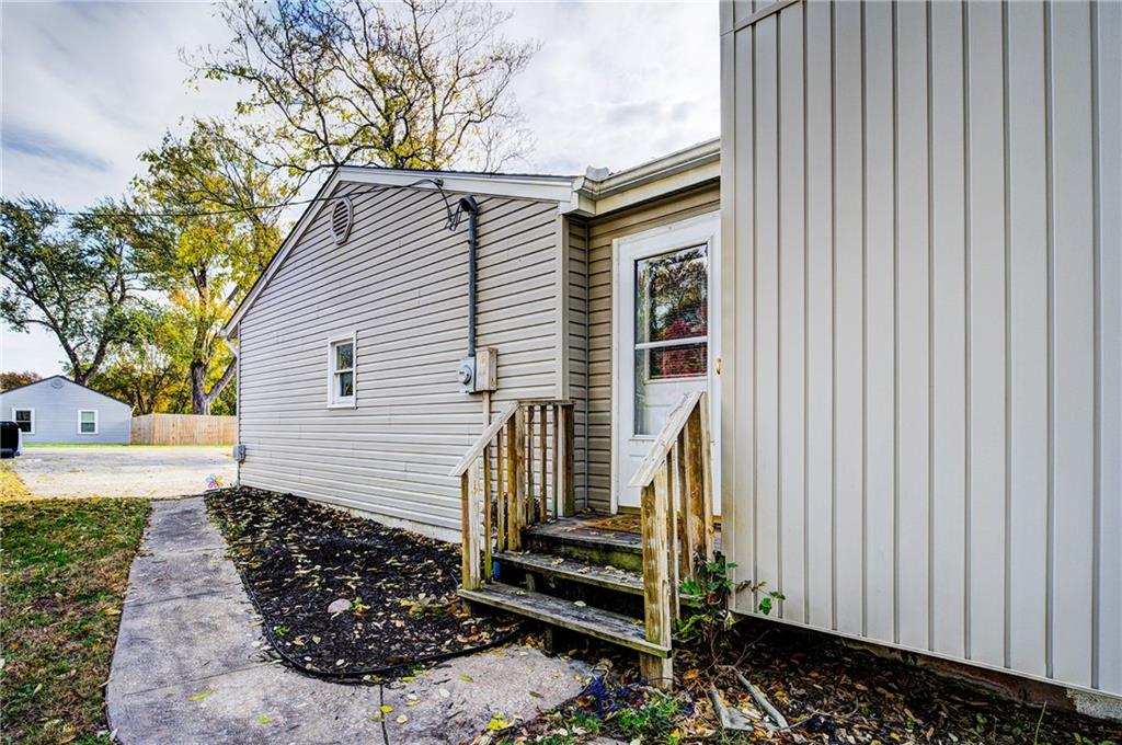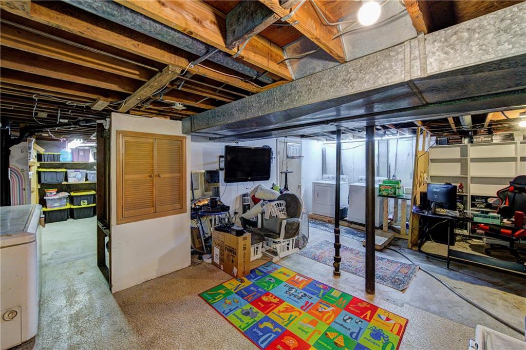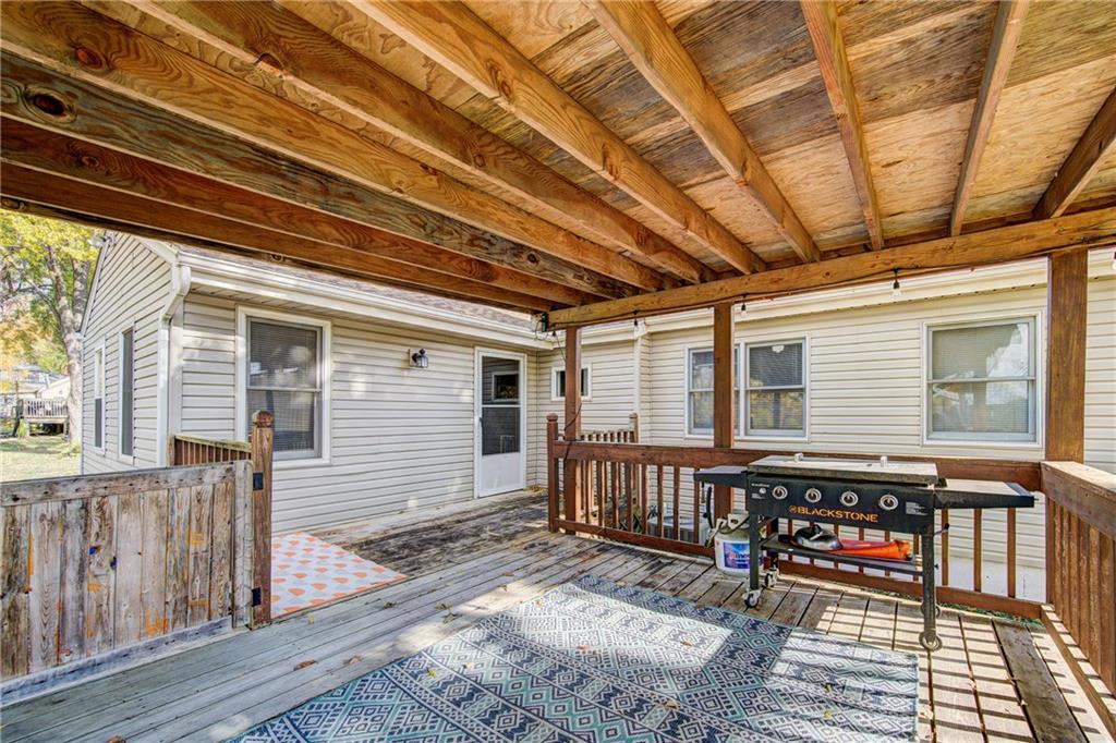 Move-in ready and well-maintained, this 3-bedroom, 1-bath ranch home offers a comfortable blend of charm and practicality. The kitchen provides generous cabinet space and opens to both the living room and the great room with a cozy wood-burning fireplace. Roomy bedrooms include a primary suite with custom built-ins. Detailed woodwork reflects quality craftsmanship. A spiral staircase leads to a spacious, unfinished basement featuring a laundry area, workshop, and flexible space for an office, gym, or additional storage. Exterior highlights include low-maintenance vinyl siding, a covered deck, and a storage shed surrounded by mature trees. Conveniently located near shopping, dining, and highway access.