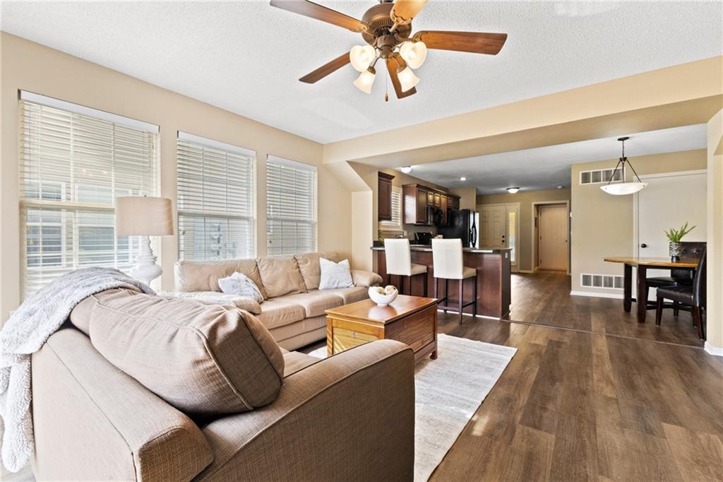 Maintenance-free living in highly desirable Benson Place! This beautifully maintained 3 bed, 2 full + 2 half bath townhome with FINISHED basement offers a bright and open main level with many windows, updated LVP flooring, a cozy living area with fireplace, and a kitchen/eat-in dining space that flows seamlessly for easy entertaining. Enjoy plantation shutters, updated window coverings, and an upgraded shade on the sliding door that opens to a peaceful, expansive backyard view filled with greenery and nature! Upstairs features a spacious primary suite with a huge walk-in closet and double vanity bath. Two additional bedrooms share a convenient Jack-and-Jill bathroom with updated flooring. The finished lower level is the perfect bonus space—complete with a wet bar/mini-fridge, large finished closet, storage under stairs, and an added half bath for convenience. ALL APPLIANCES STAY INCLUDING REFRIGERATOR AND W/D! Enjoy worry-free homeownership with maintenance-free living that includes NO yardwork or heavy snow removal AND all exterior maintenance is covered by the HOA. Take advantage of fantastic community amenities with access to 2 community pools, trails, splash park, and play area. Located within Liberty Public Schools and just minutes from local restaurants, shopping, and quick access to I-35 and I-435 highways. Move in ready!