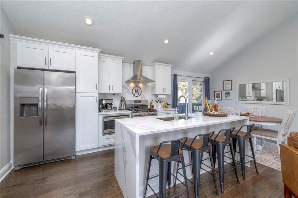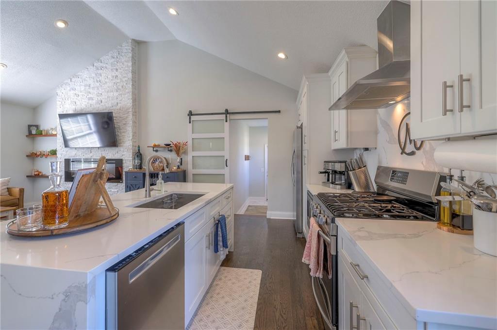 Picture Perfect in Roeland Park! Check out this stunning fully renovated 3 bedroom ranch with an open floor plan and a fabulous walk-out finished basement. Main floor boasts: gleaming hardwood floors, a vaulted ceiling, stack stone fireplace and an amazing kitchen with custom cabinets, large waterfall island, quartz countertops and stainless steel appliances. Down the hall you’ll find an updated full bathroom, laundry room, 2nd bedroom and a true primary bedroom suite. The finished lower level features a 2nd stack stone fireplace, custom wet bar, 3rd bedroom and a full bathroom. And don’t forget about the oversized yard, large stained deck with storage shed below, cozy patio/fire-pit area, 6-ft wood privacy fence and newly epoxied 2-car garage! Superb location close to popular shops, restaurants, highways and award winning Shawnee Mission schools. Stylish, bright and move-in ready…this is the one. Check it out today!