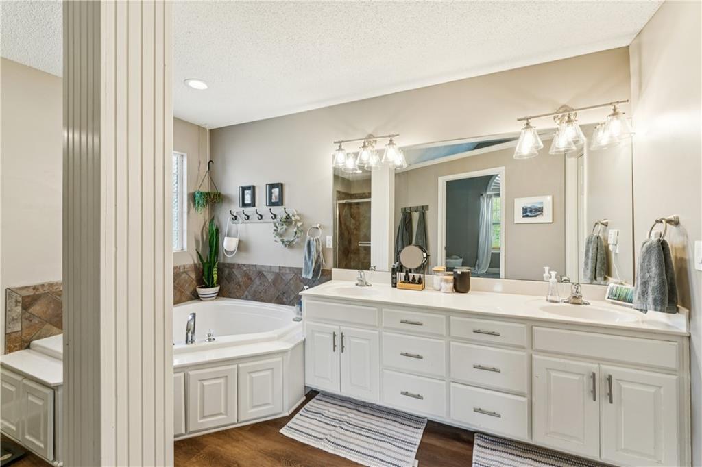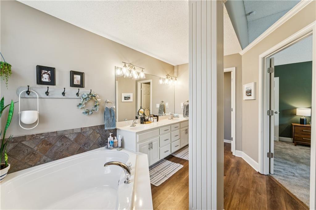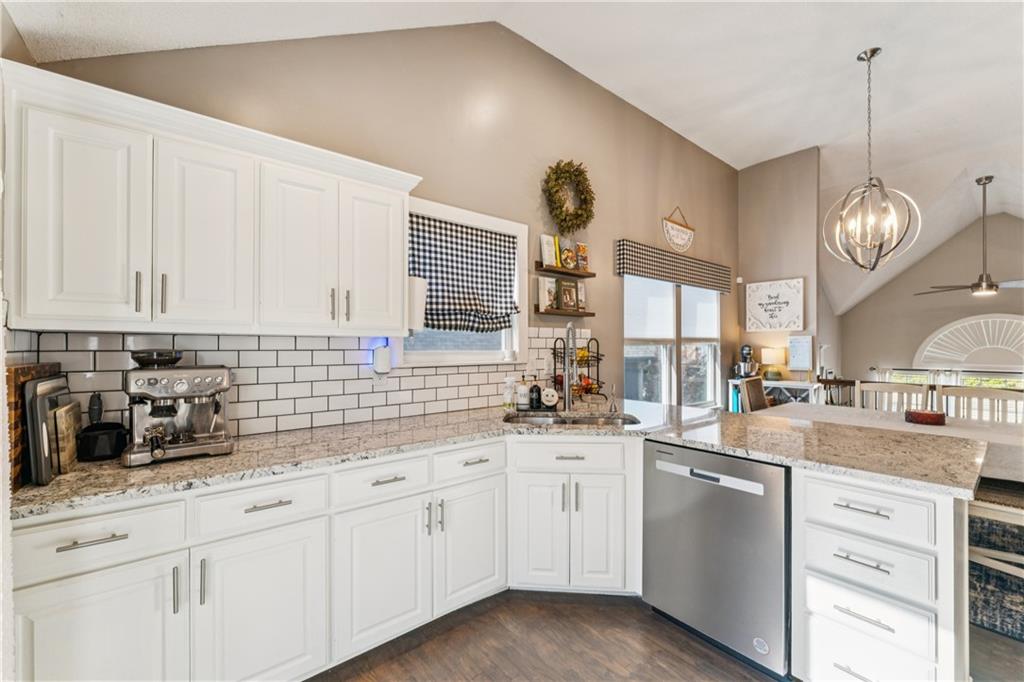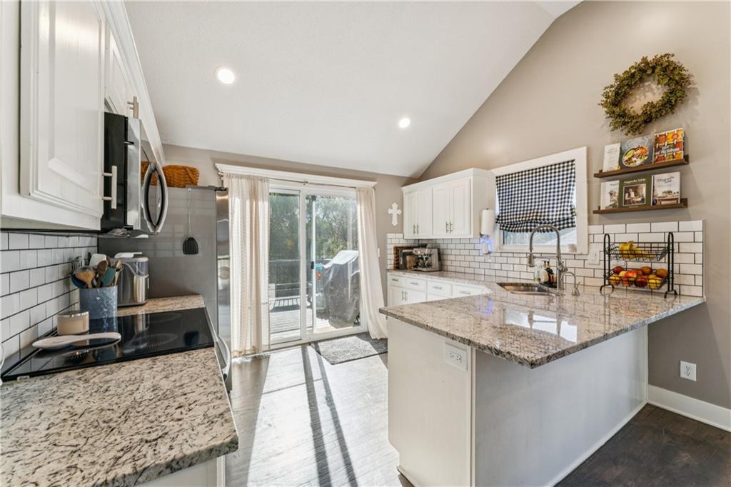 Welcome to this beautifully updated, light-filled home that’s bursting with style and comfort! The gourmet kitchen will make any home chef smile — featuring granite countertops, a breakfast bar, stainless steel appliances, and tons of storage. The spacious dining area overlooks the great room, where you’ll love gathering around the dramatic fireplace under the vaulted ceilings. The private primary suite feels like your own retreat — perched on its own level with a vaulted ceiling, spa-like bathroom complete with a soaking tub, separate shower, dual vanities, and a huge walk-in closet. Two large secondary bedrooms also feature walk-in closets and share a beautifully updated bathroom. The walk-out lower level offers even more living space with a cozy family room, 4th bedroom, third full bathroom, and abundant storage. Step outside onto the deck off the kitchen and take in the peaceful, private lot with its lovely tree-lined backdrop — the perfect place to relax or entertain! Come fall in love with this happy, sunlit home that truly has it all — space, style, and a wonderful sense of serenity!