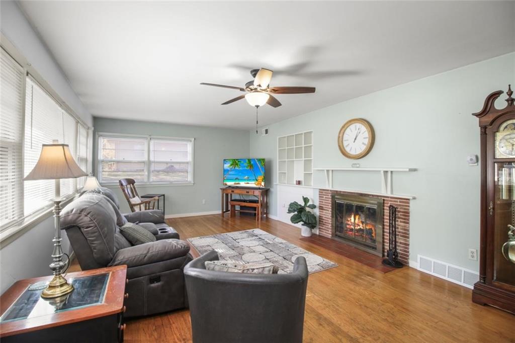 Timeless Charm Meets Everyday Convenience! Step into this spacious 1950s ranch that perfectly blends vintage character with modern updates. You’ll love the easy main-level living — complete with laundry on the main floor! Original details like hardwood floors, a classic bathroom, and built-in cabinetry add a touch of mid-century charm, while thoughtful updates bring comfort and practicality to today’s lifestyle. The kitchen features a newer dishwasher, gas cooktop, updated lighting and ceiling fans, and even a four-door pantry for extra storage. An inviting bonus room off the kitchen offers flexible space — perfect for a family room, home office, or large dining area for entertaining. Downstairs, hobbyists and DIY lovers will appreciate the workshop area with over 20 feet of built-in cabinets, counters, shelving, and LED lighting. The basement also includes a second full bath ready to be updated and finished and an additional finished room ideal for storage or an office. Outside, enjoy the large fenced yard, complete with a storage shed and new garage doors and openers. Conveniently located just minutes from major highways and Raytown Schools, this home offers classic style, ample space, and endless possibilities to make it your own.